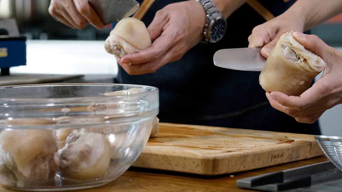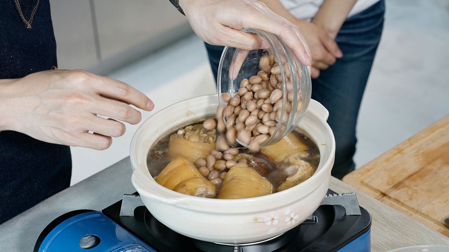 Colin 老師表示,「花生滷豬腳」是否能色、香、味俱全,其重要關鍵就是一瓶對的醬油。」想要料理出道地古早味,當然要選擇遵從古法 270 天釀造的「古釀醬油,藉由它完美協調黑豆甘甜與黃豆醬香,讓豬腳有漂亮醬色及醇厚、鮮美好滋味。