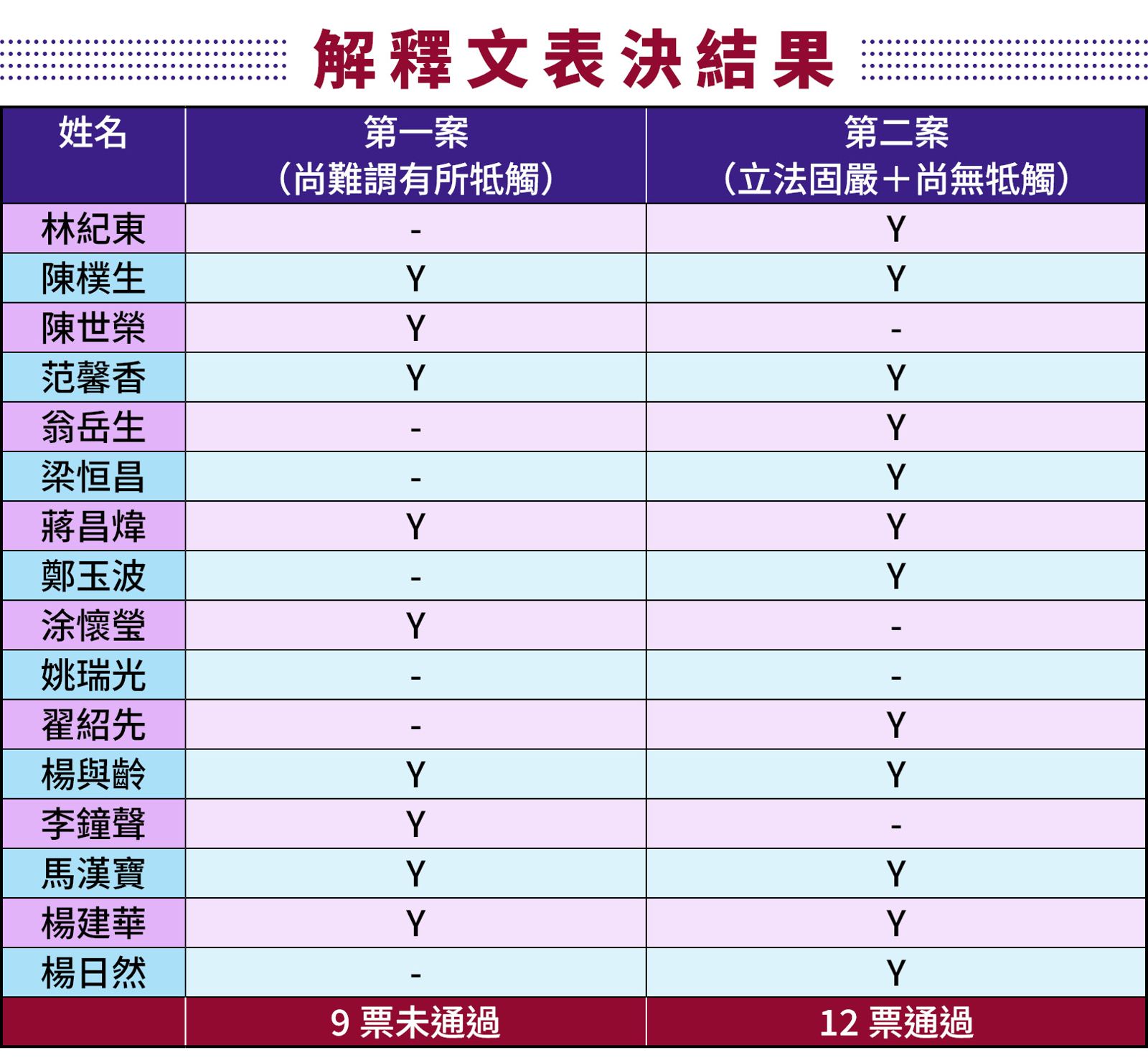 [1] 此案16位大法官全數出席,需達四分之三也就是12票才能通過。