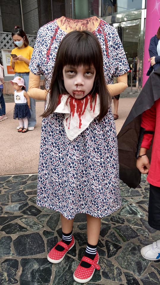 每年萬聖節都可以看到許多人的精心裝扮,而家長們更是會竭盡所能,將所有的心思都花在小孩的裝扮身上。今年台南一所幼兒園辦理萬聖節裝扮活動,一眼望去,驚見一位小女孩竟然扮演斷頭女鬼,神情驚悚、逼真,令人看得膽戰心驚,她不僅獲得現場民眾超高評價,連外國知名社交媒體「9GAG」都轉發她的照片。