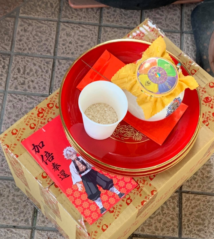 貼文一出,釣出許多內行網友回應,紛紛留言表示,「五行招財,不過方法不對,變成見者發財」、「寶瓶是用來供奉的,這種擺法一定又是哪個江湖術士亂教的吧」、「這應該是加持或佈施,那個是藏傳佛教的寶瓶,象徵佛或菩薩的物品,裡面裝著經文、寶物、水晶、象徵五臟六腑,沒事的,見者吉祥」,還有調皮的網友看完後開玩笑,「這是召喚風柱的」、「召喚鬼殺隊的」。