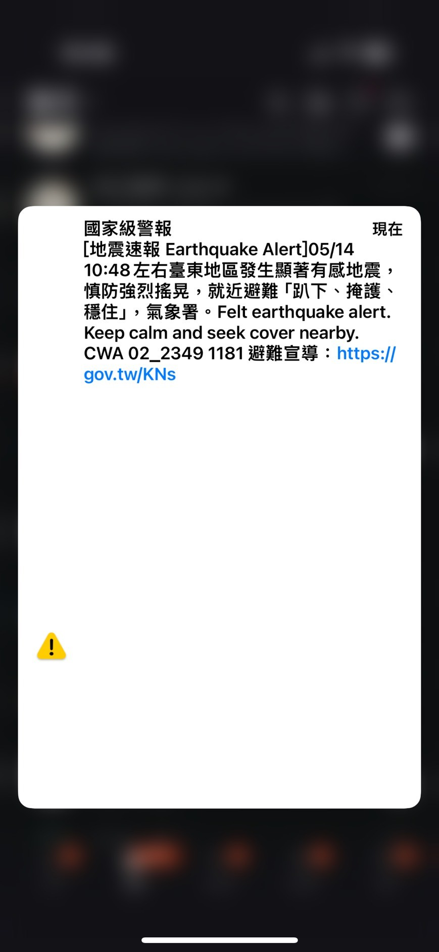 中央氣象署發布, 今(14)日10:48左右 , 嘉義縣大埔鄉發生芮氏規模4.5有感地震 ,地震深度10.7公里,許多民眾也收到國家級警報。