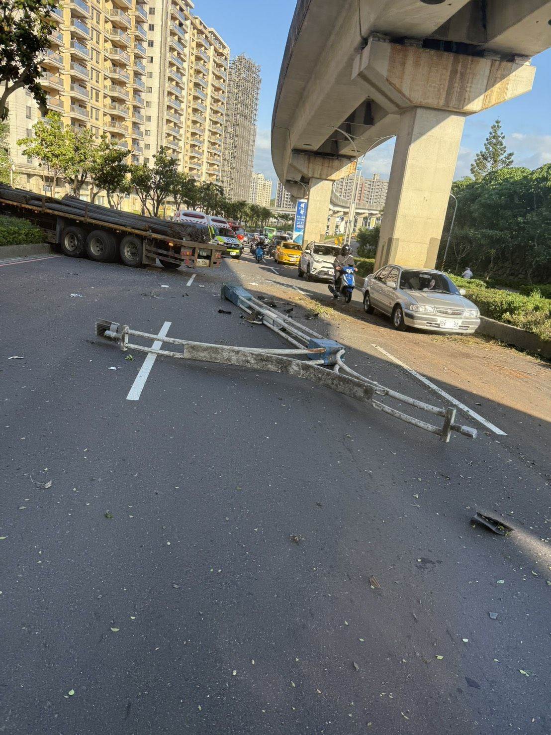 事故發生於上午8時10分許,地點位於淡金路二段(往三芝方向)。警方表示,拖板車當時由台北往三芝方向行駛,疑似因不明因素導致失控,先撞上路燈及安全島,再衝向對向車道,現場車體受損嚴重,司機當場陷入昏迷,經救護人員處置後緊急送醫。