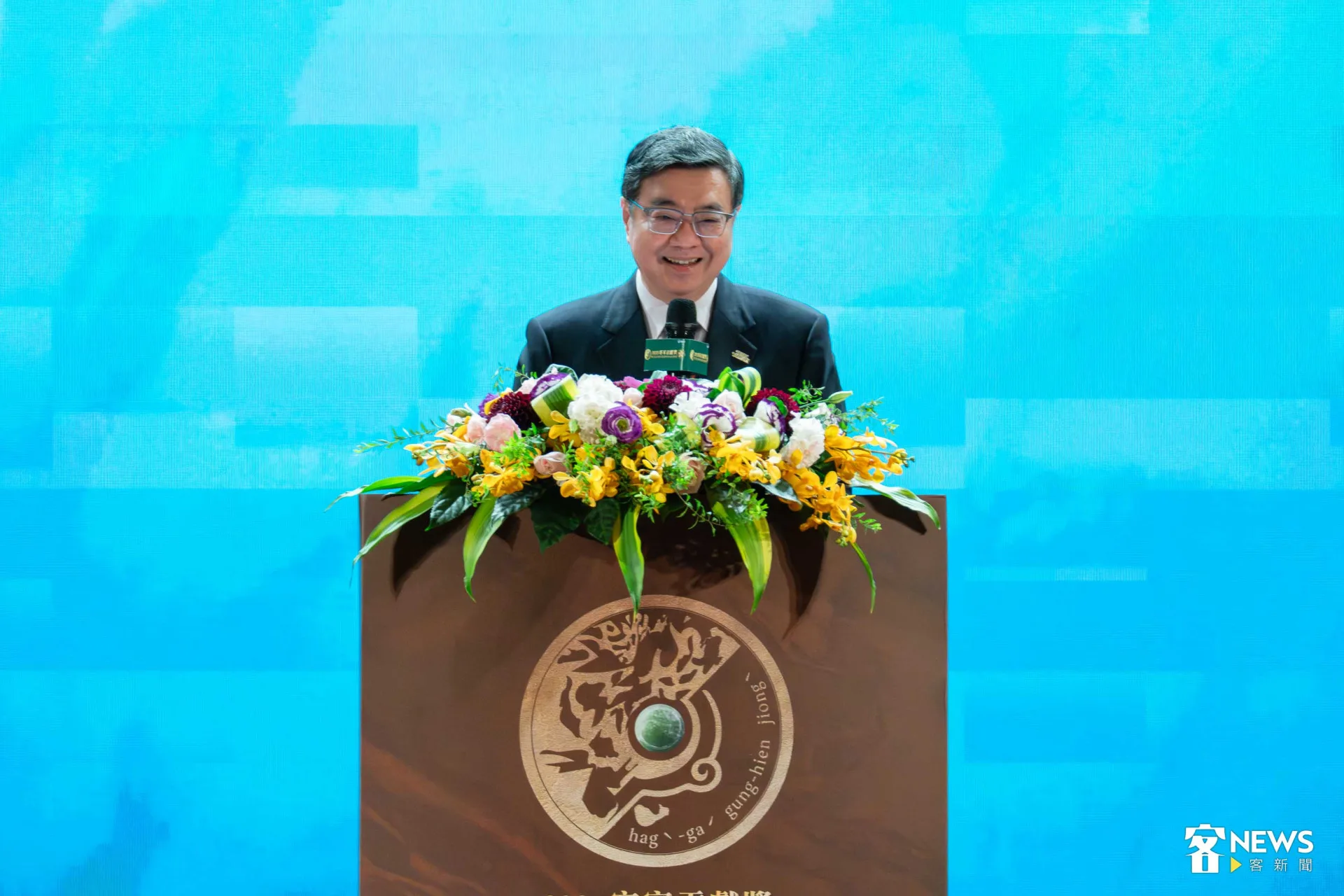 陳欽生難掩緊張,直說自己必須看稿。他謙虛地說,今天接受這份榮耀,內心十分過意不去,「因為我認為自己的所做所為對客家鄉親來說,好像沒什麼貢獻。」