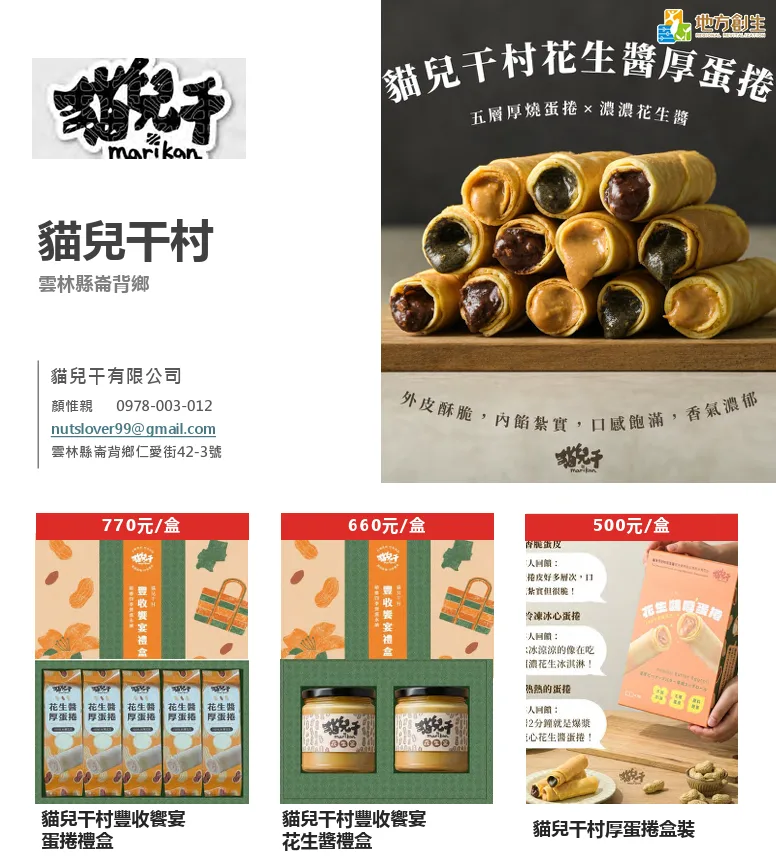 【生活中心/綜合報導】農曆春節將至,國家發展委員會今天(12日)公布2026新年地方創生禮品精選型錄,網羅具在地特色且可支持青年返鄉的新年禮盒,提供民眾新春送禮選擇。其中,展現客庄風情的新竹縣橫山鄉品牌「大山北月」,以在地柑橘製成柑橘醬油等各類農產品組合、苗栗縣苗栗市「BONBONS甜點」以友善環境農法種植的貓裏紅濃茶餅乾、雲林縣崙背鄉「貓兒干村」花生醬厚蛋捲等,都榜上有名。