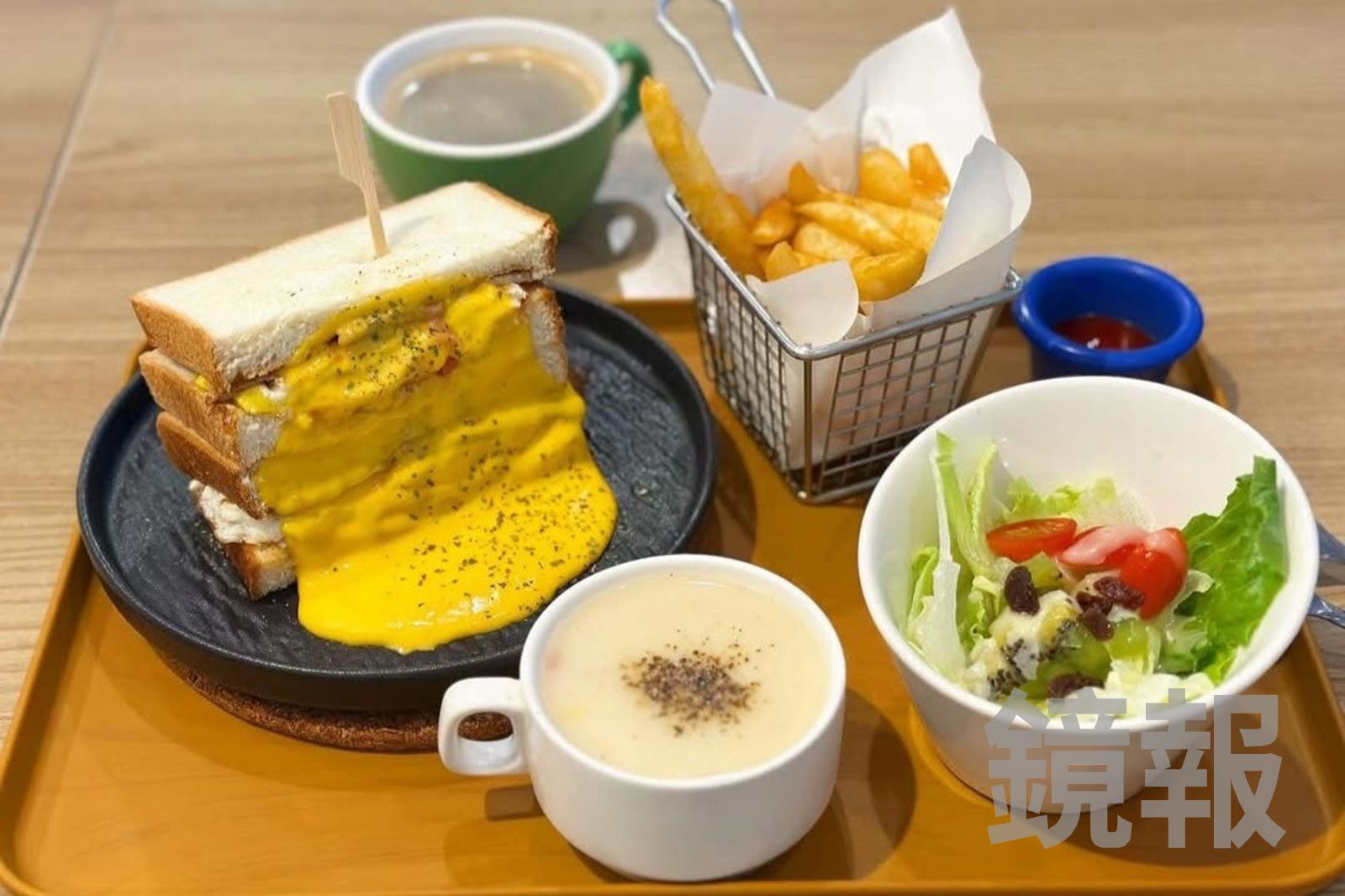 最常點的套餐是「熔岩花醬肉蛋吐司」(275元/份),是用厚片吐司製作,夾著兩片里肌肉、煎蛋和番茄片,再淋上瀑布起司醬。吐司扎實,每一口都能咬到滿滿的料跟起司醬。其實我每次都吃不完,但我會把一半的吐司包回家,用烤箱回溫當寫稿時的點心。