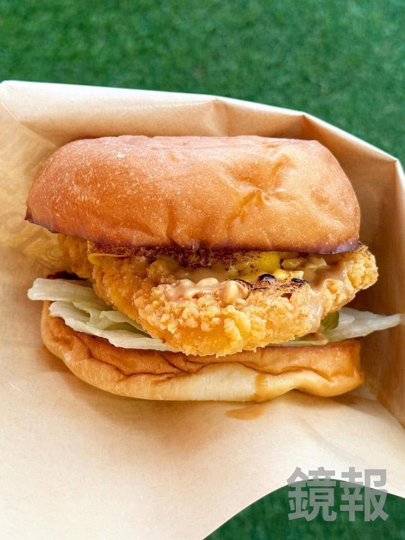 招牌的「香濃花生脆雞堡」(140元/份)是用帶顆粒的花生醬,配著炸雞一起吃的時候,脆上加脆,配料除了番茄、生菜跟起司,畫龍點睛的酸黃瓜,讓整個漢堡吃起來沒這麼油膩。