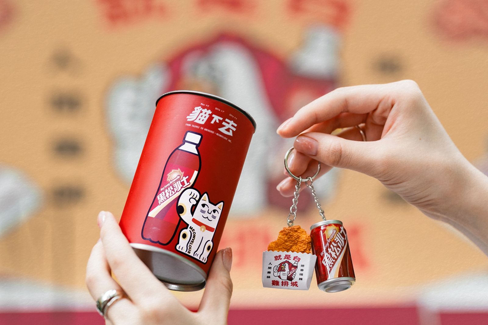 盲罐驚喜包含「黑松沙士+雞排微縮吊飾」、「黑松經典玻璃杯」等設計周邊,其中微縮吊飾重現台味精髓,迷你雞排與玻璃瓶沙士組合,不僅超Q更具收藏價值。