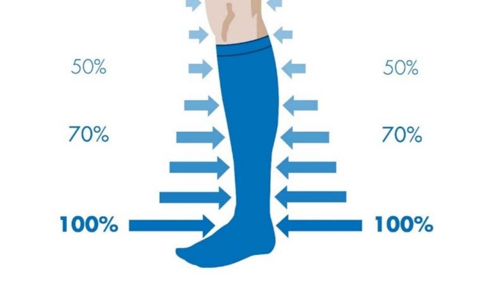 彈性襪的原理是由下而上遞減壓力,腳踝施加較大壓力、小腿施加較小壓力,幫助血液由下肢順利回流心臟。不過彈性襪也非人人適用,特別是糖尿病、末梢血管疾病或皮膚病變者,若壓力錯誤反可能引發傷害。建議穿著前先諮詢家庭醫學、心臟科或血管外科醫師評估是否適合。