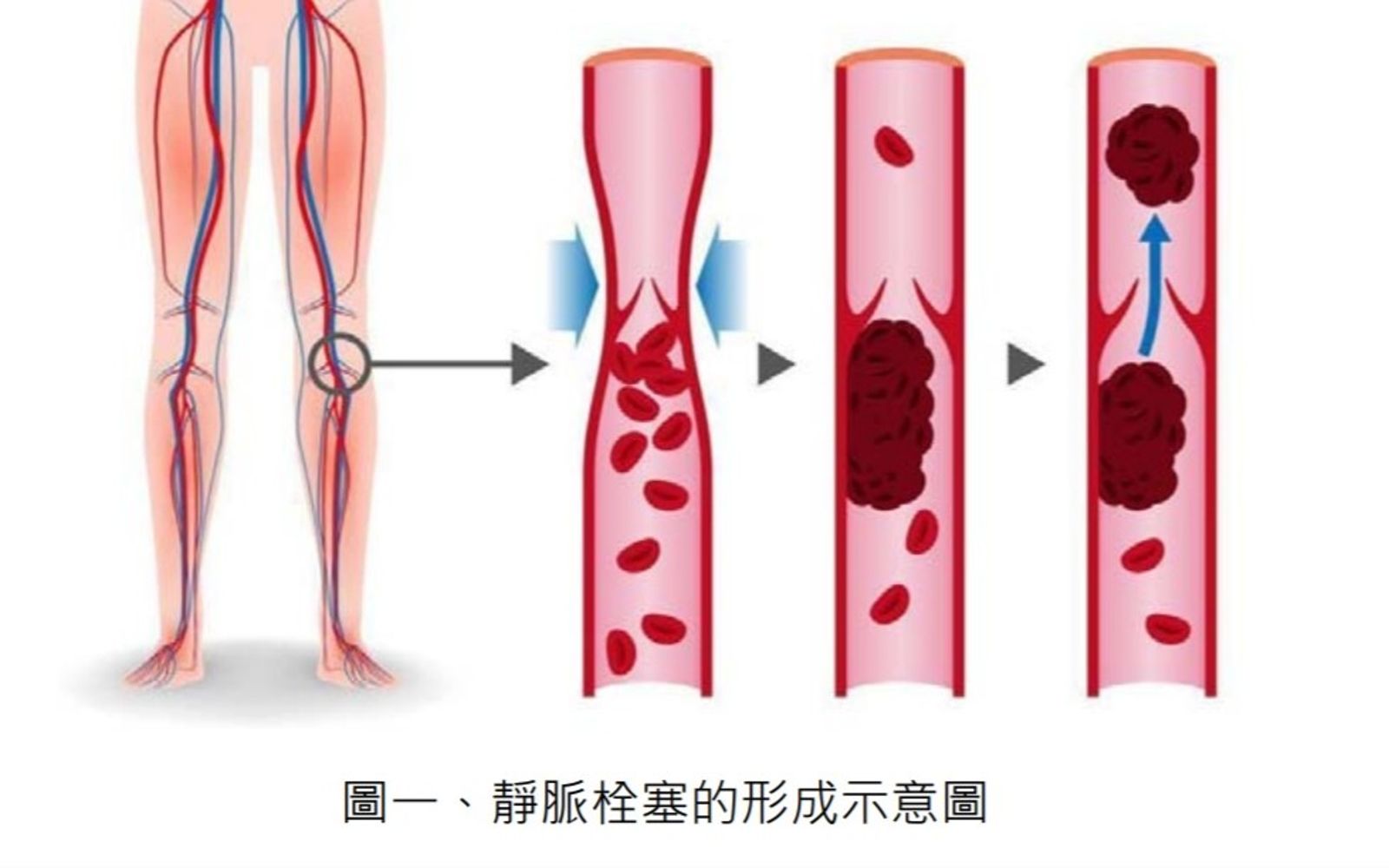 常見初期症狀包括小腿腫脹疼痛,下肢皮膚變紅發紫或感到異常溫熱,但部分患者初期完全無症狀,等到呼吸困難、心跳加快、頭暈、咳血時,可能已是栓塞造成肺部阻塞的嚴重情況。