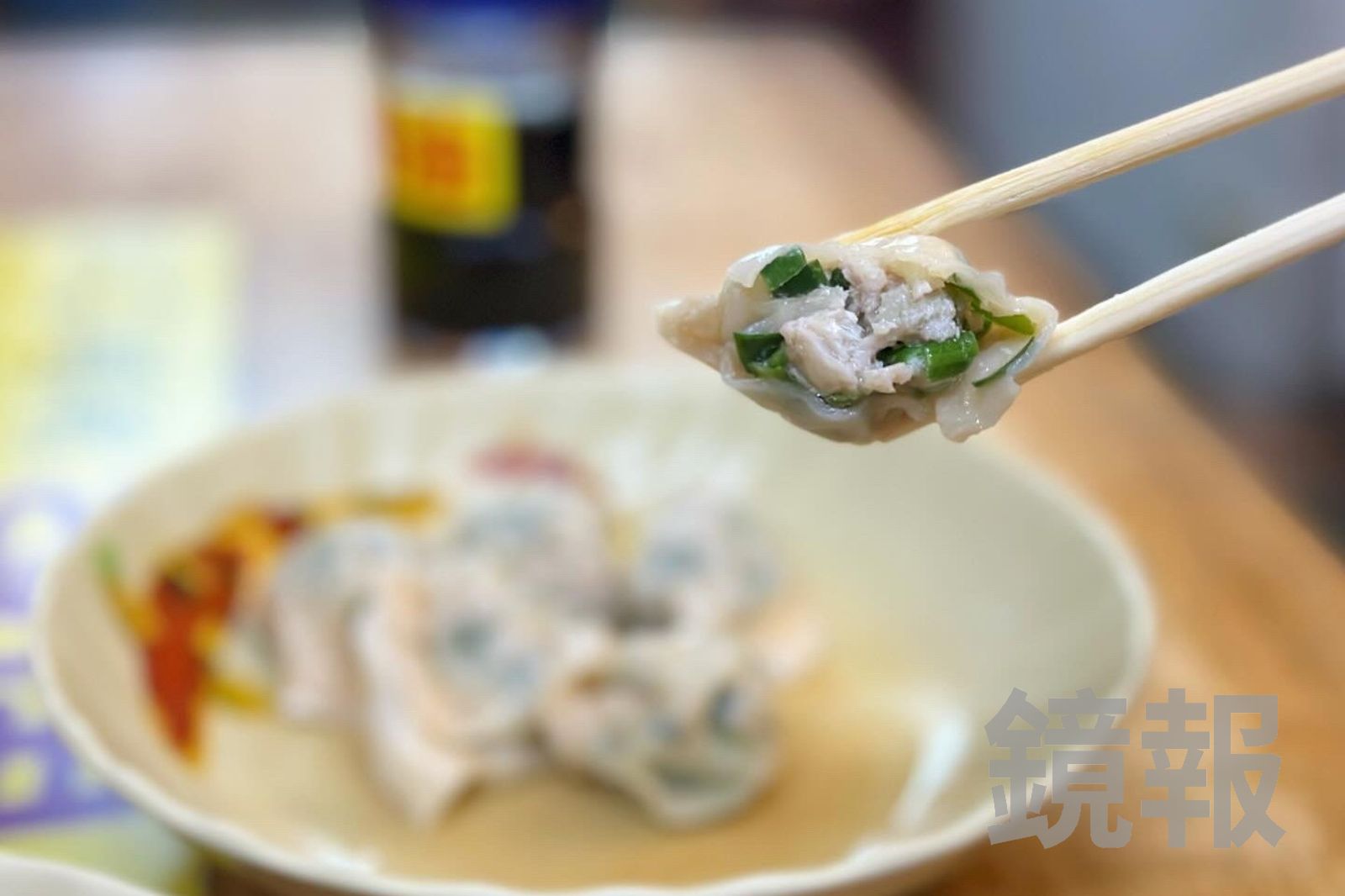 高麗菜水餃麵皮很Q、有咬勁,菜末清甜、肉餡夠味,不沾醬油也好吃。