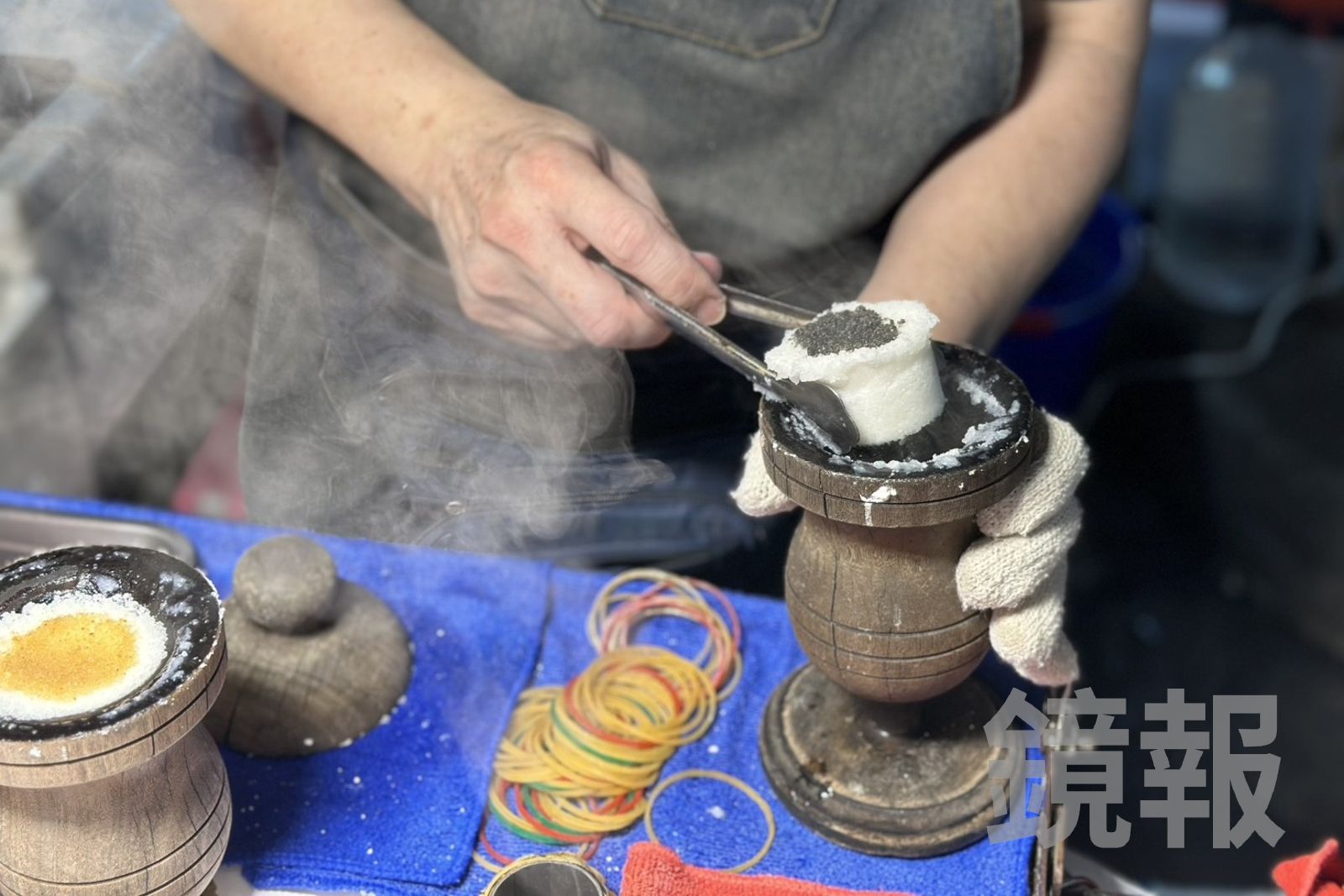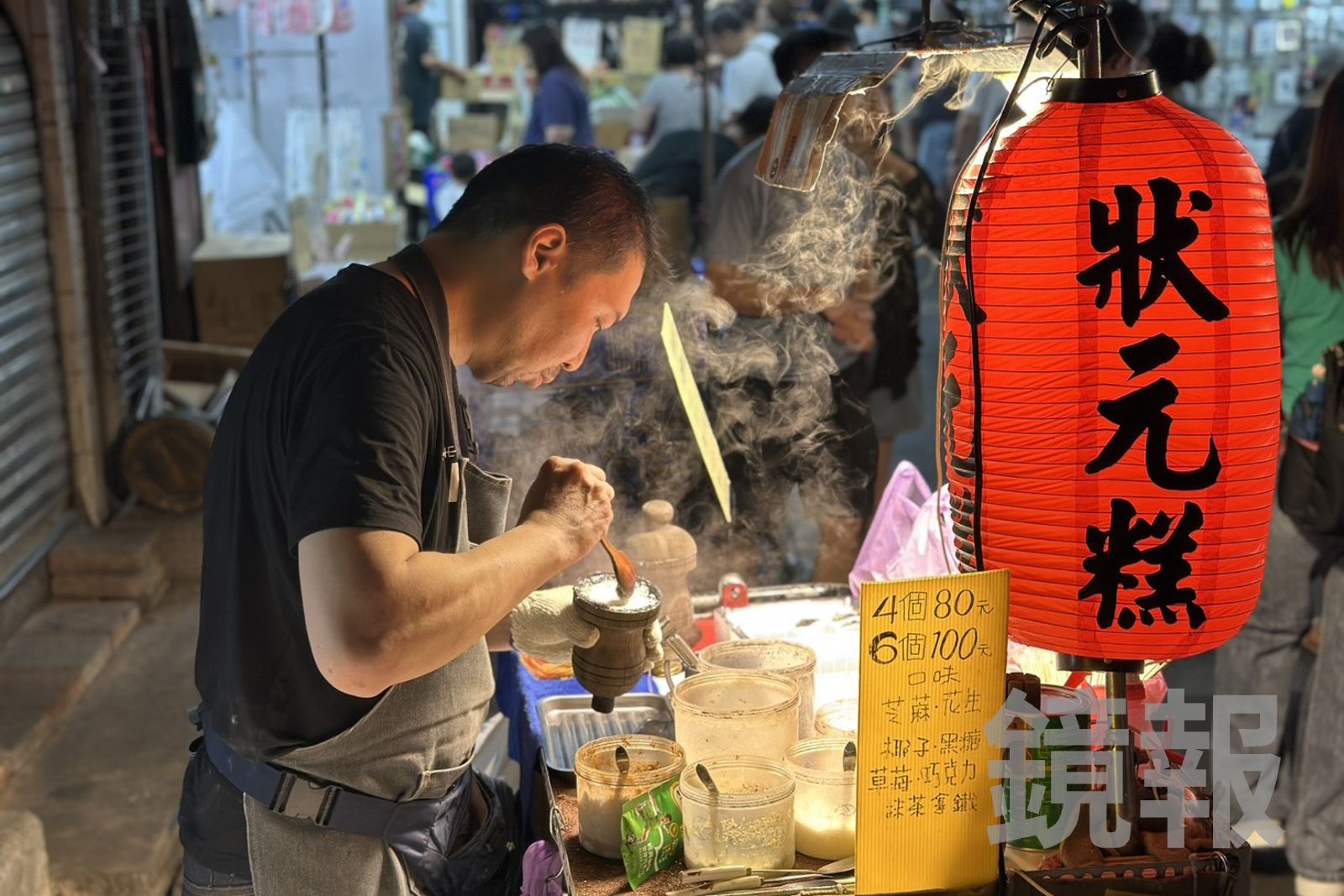每回經過夜市裡唯一一攤的「狀元糕」,都會讓我駐足停留,小小攤子,彷彿打了聚光燈,在表演一場秀。