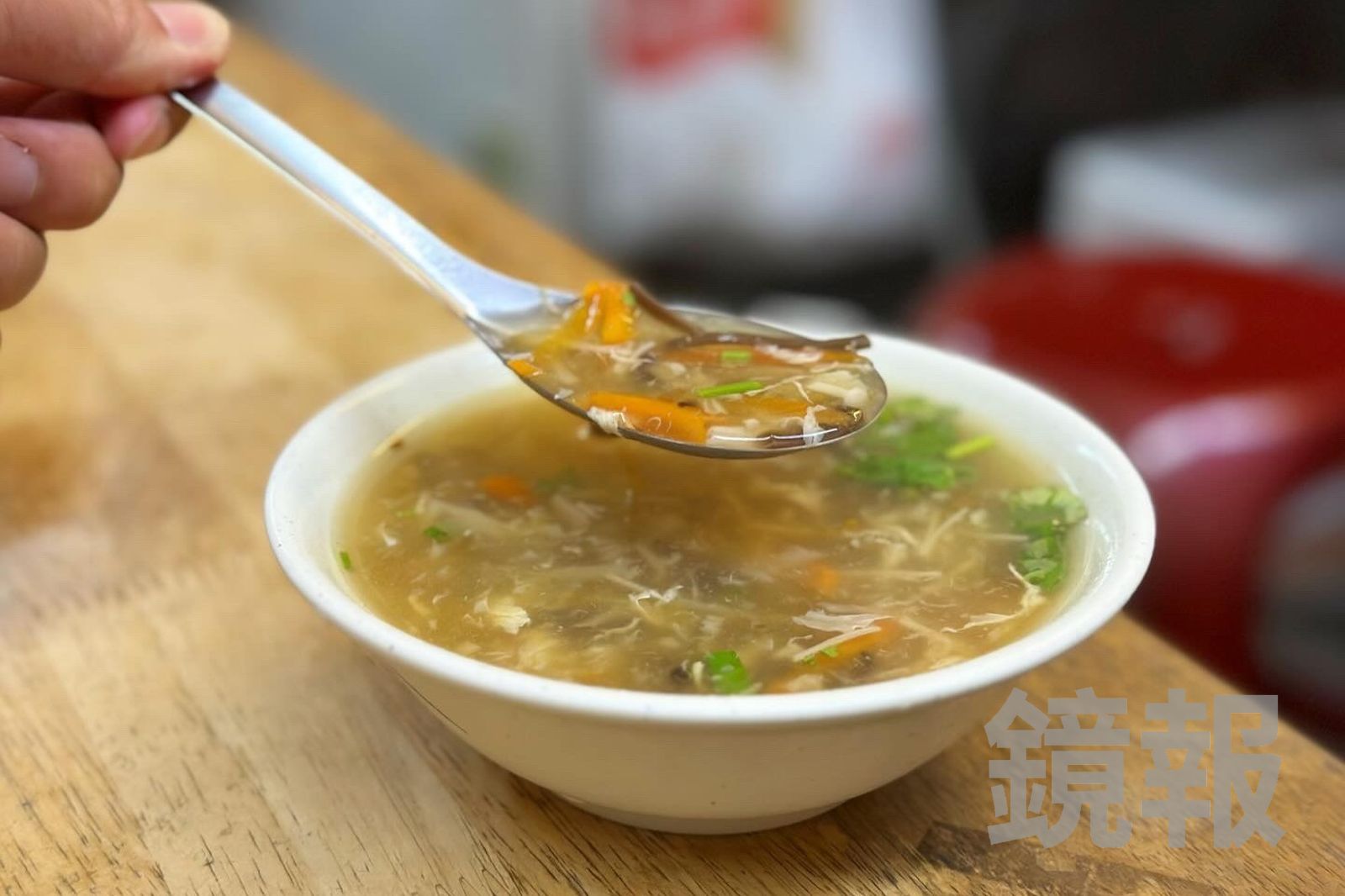 「酸辣湯」(30元/碗)湯頭清,沒太多勾芡,反而像羹的味道,喝得到香菇、金針菇的甜味。