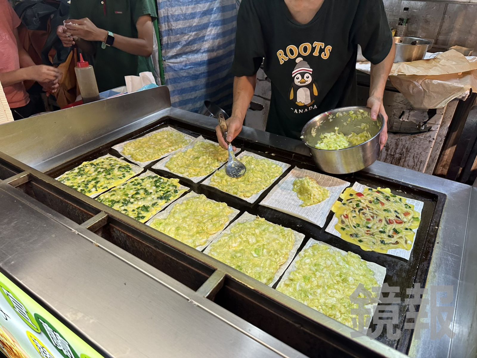 煎檯常常要一口氣下10塊餅,才來得及應付飢腸轆轆的排隊客人。