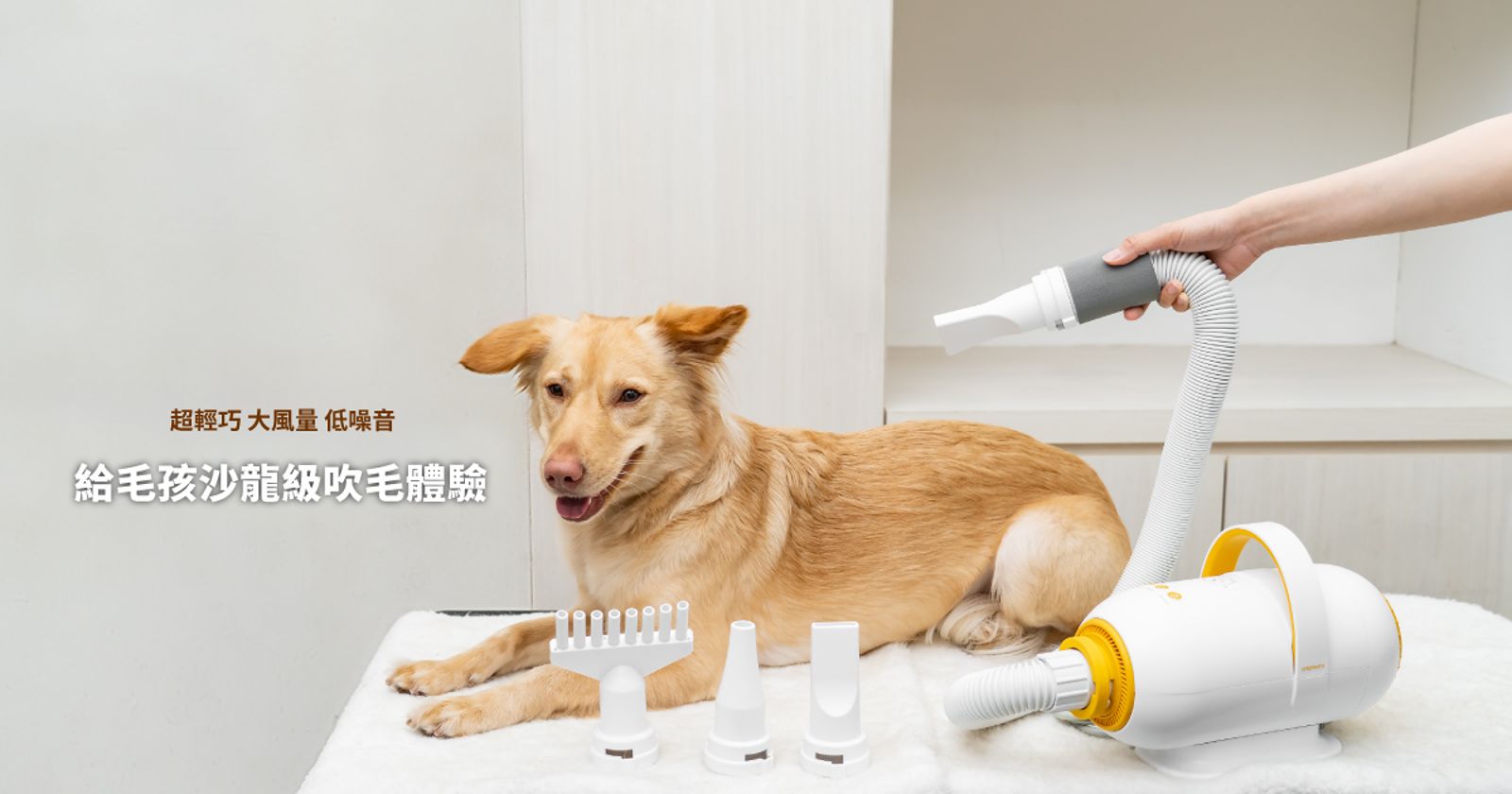 奧本則帶來「寵物負離子快乾吹水機」,風量強勁卻低噪音,還能釋放負離子讓毛髮柔順光亮,優惠價3,499元。