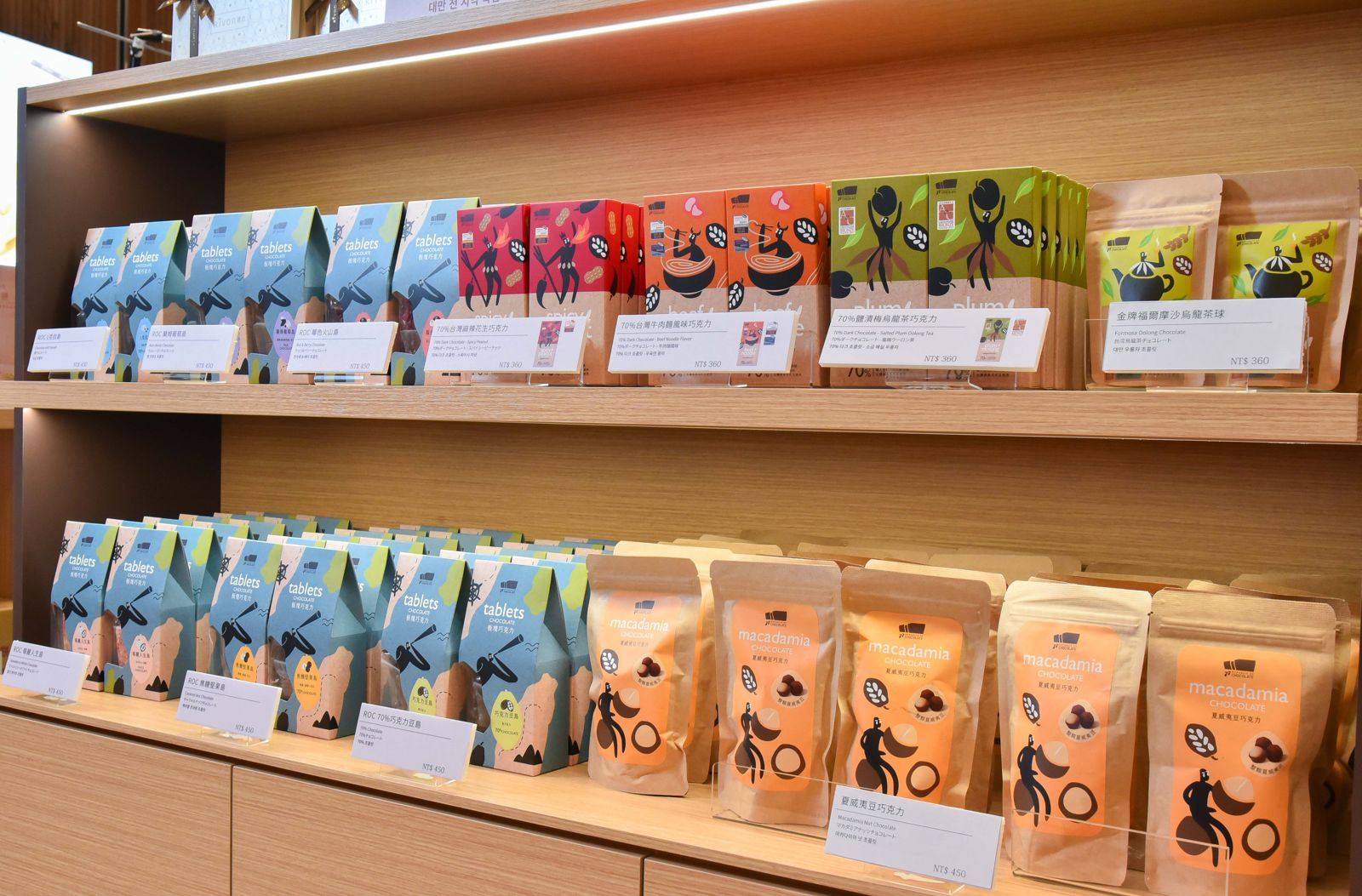 「70%台灣麻辣花生巧克力」是把花椒香、辣勁、糖炒花生和黑巧克力融為一體,吃起來辣中帶甜、香而不膩。「70%台灣牛肉麵風味巧克力」雖然沒有真的牛肉藏在裡面,但用了漢方中藥材,打造濃郁湯頭般的氣息。「70%台灣鹽漬梅烏龍茶巧克力」嚴選屏東可可、嘉義無毒青梅與高山烏龍,交織出台灣山林與果香的細膩層次。
