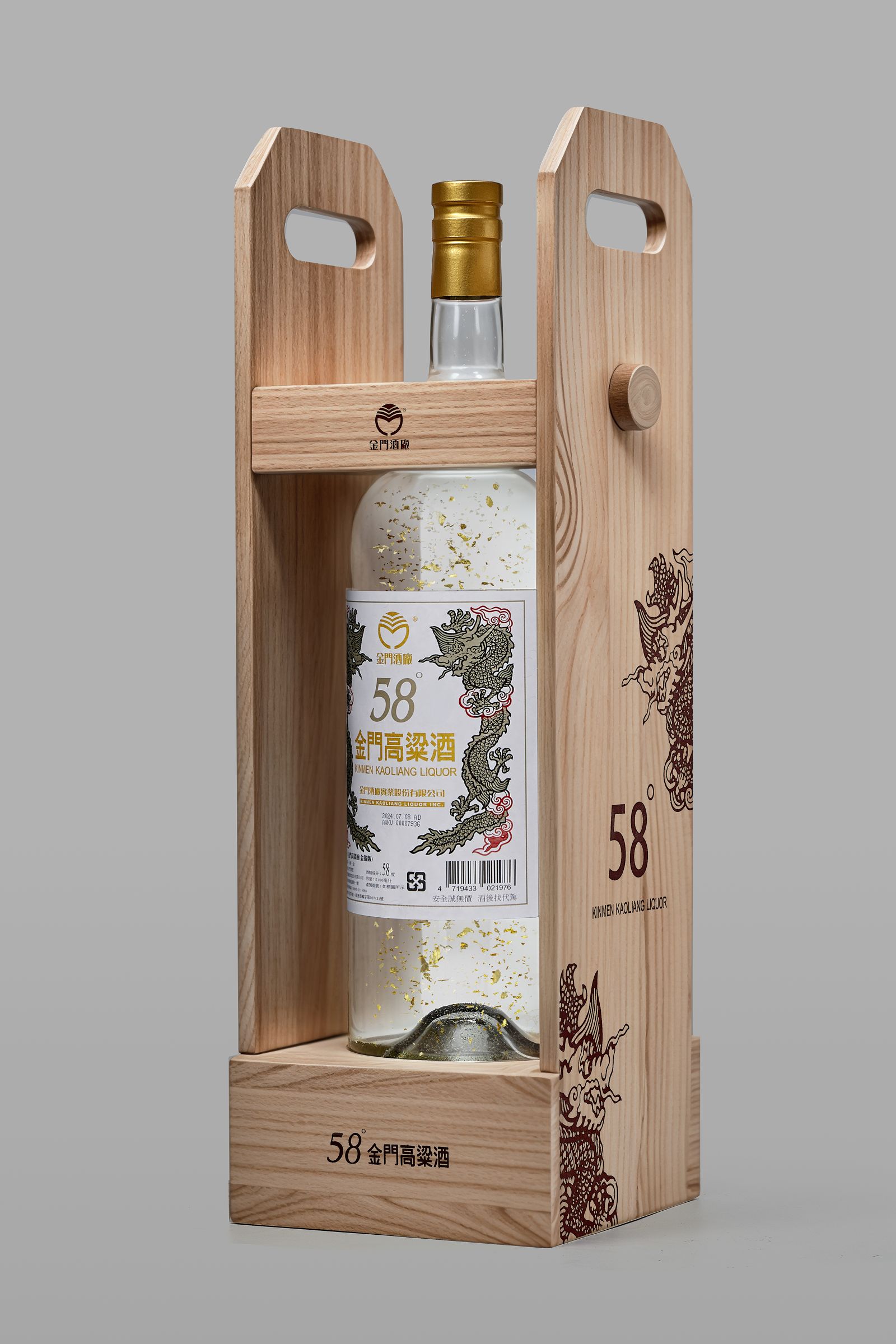 俗稱白金龍的「58度金門高粱酒」,是金門酒廠最具代表性的產品之一。「黑松」近期和「金門酒廠」聯手,把經典的白金龍放大超過6倍,推出史上容量最大的白金龍「傳家聚寶龍」。還請首席調酒師特選世界金獎等級酒體,融入奢華金箔,並附贈專屬實松木展示台,絕對是要買來收藏的限量級酒款。