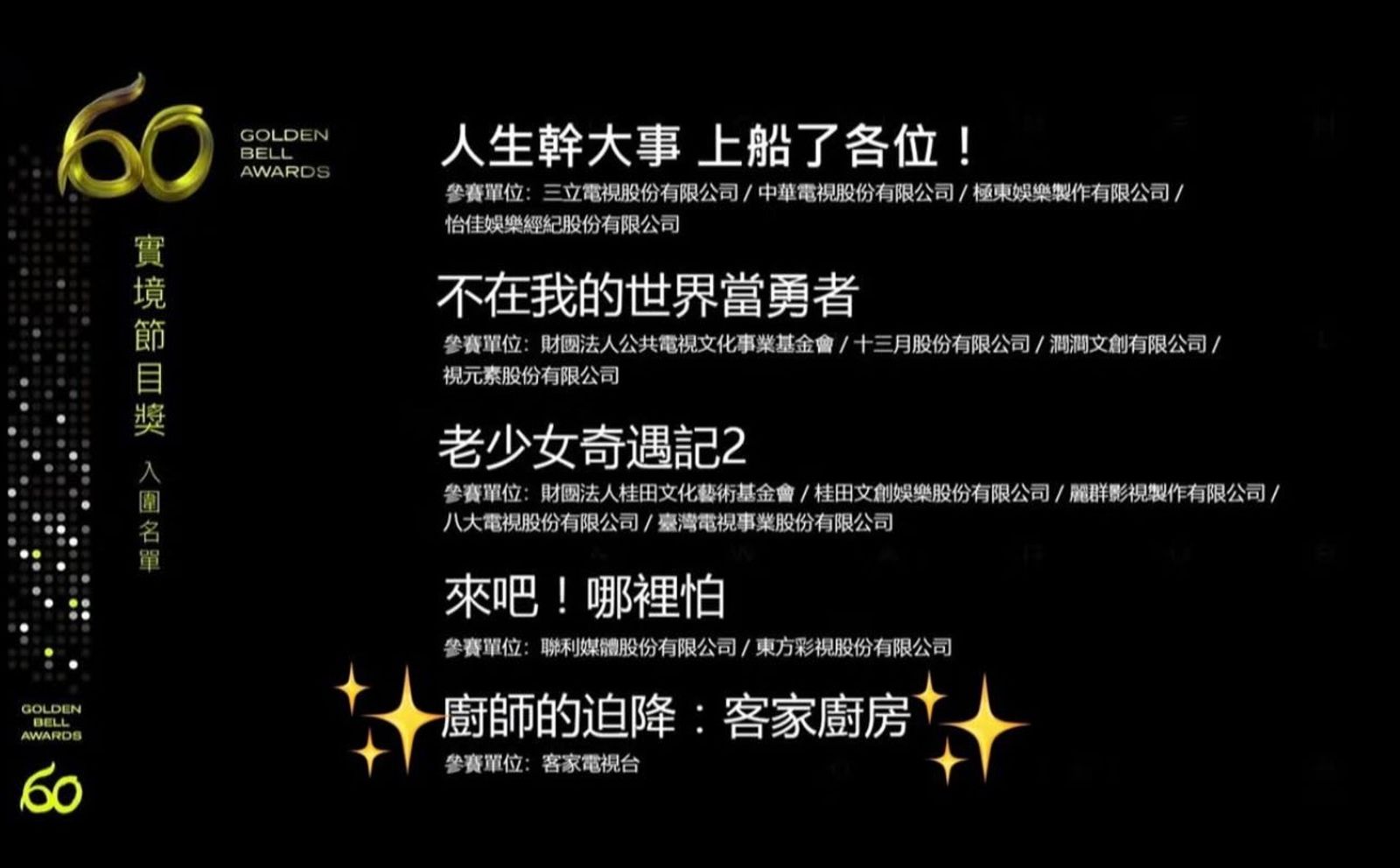 出道20年的SJ,因為來台灣如同走灶咖,一直是灶咖韓團的代表之一,沒想到利特去年參與客家電視的《廚師的迫降:客家廚房》,竟然與温昇豪、江宏傑等台灣藝人,一同入圍益智及實境節目主持人獎,該節目也同時入圍實境節目獎,喜上加喜。