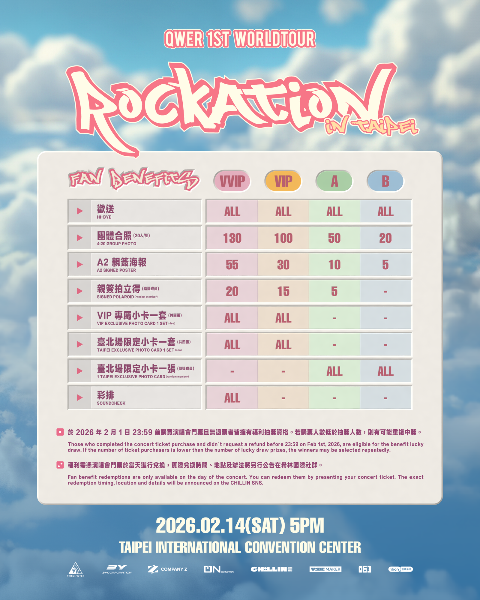 韓國人氣樂團QWER即將席捲台北!迅速竄紅的她們,今年上半年密集訪台,這次召開首度世巡,也沒忘了台灣歌迷,將在2026年2月14日情人節當天在台北國際會議中心(TICC)舉辦「QWER 1ST WORLD TOUR <ROCKATION> in TAIPEI」,陪粉絲共度情人節。