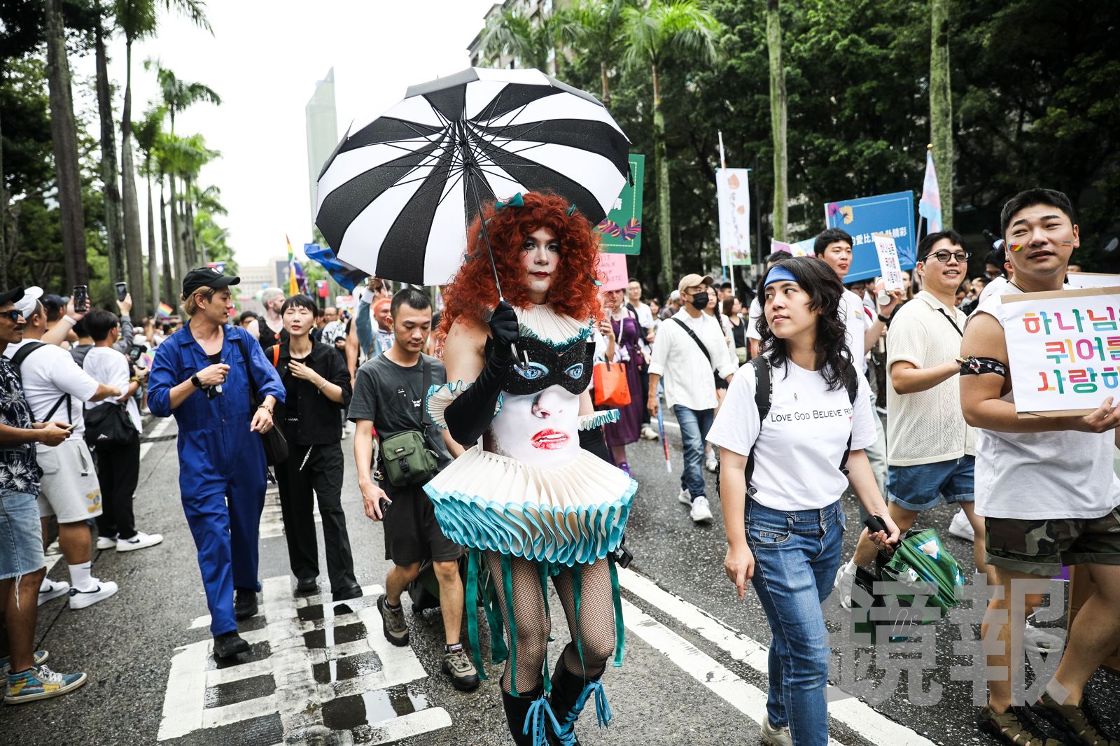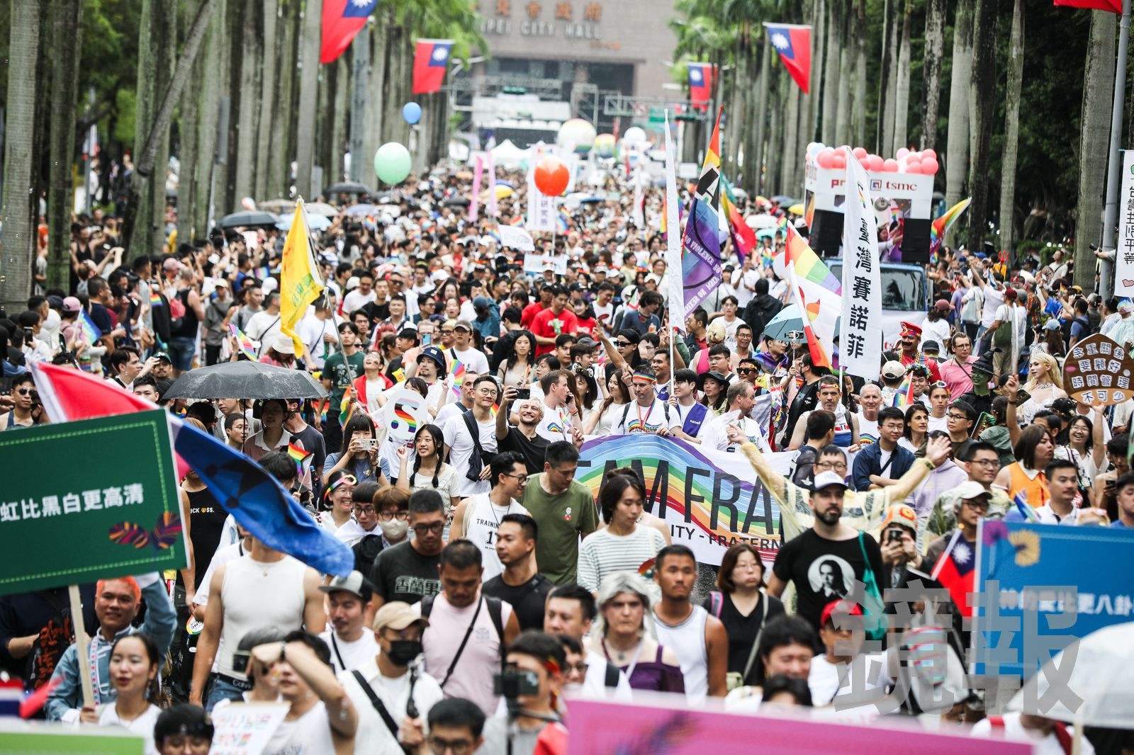 以「超・連結——跨越標籤,理解差異」為主題的2025臺灣同志遊行今天舉行,儘管天空飄著小雨,民眾仍然精心打扮,揮舞七彩旗幟,參與這場彩虹嘉年華。