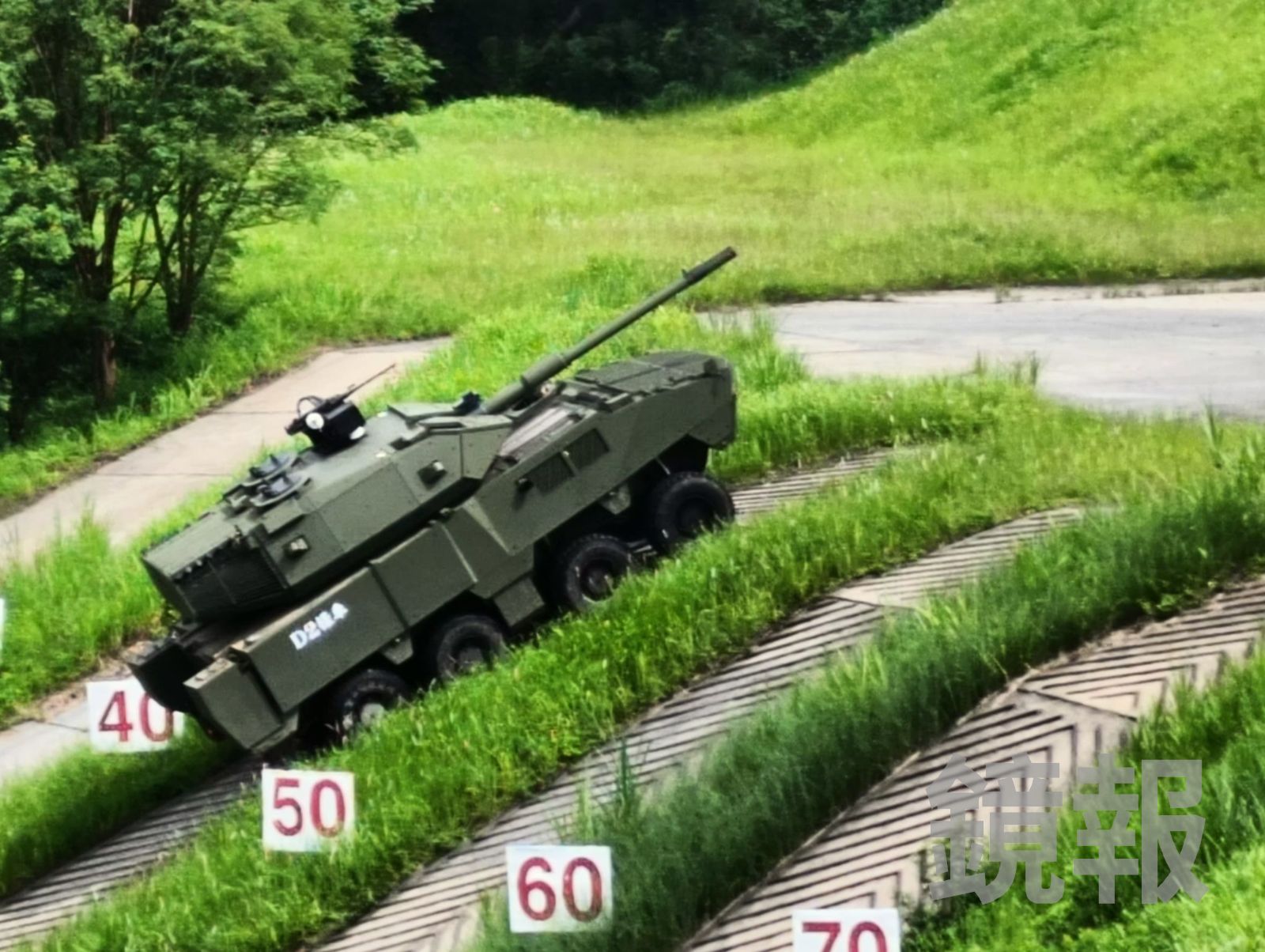 國防部軍備局最早研發完成的105公厘「黑熊」輪型戰車。(圖/王烱華攝)