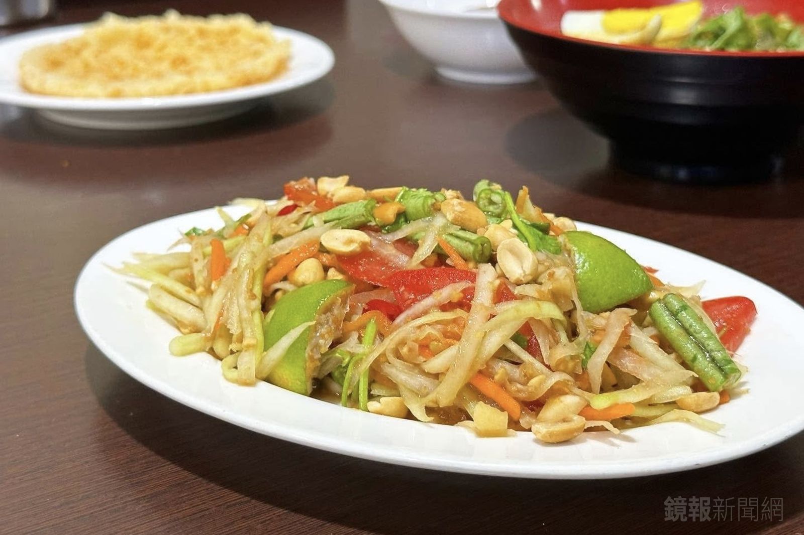 由於緬甸和泰國的國土有接壤,緬甸人押身分證、過個橋,就能短暫到邊境採買或觀光,生活飲食是相互影響的,因此李盈盈也會做涼拌青木瓜、打拋豬等泰式小吃,味道不輸泰國餐廳,價格卻親民許多。