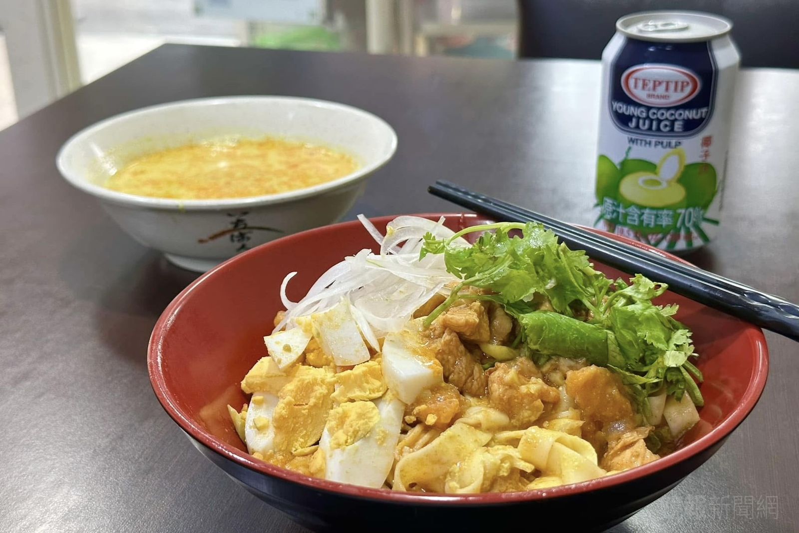 如果你喜歡重口味,推薦試試「咖哩雞金山麵」(90元/份)。上桌後,可以擠些檸檬汁,加點桌上的辣渣,味道酸爽微辣,寬油麵、雞肉塊吸滿咖哩香氣。