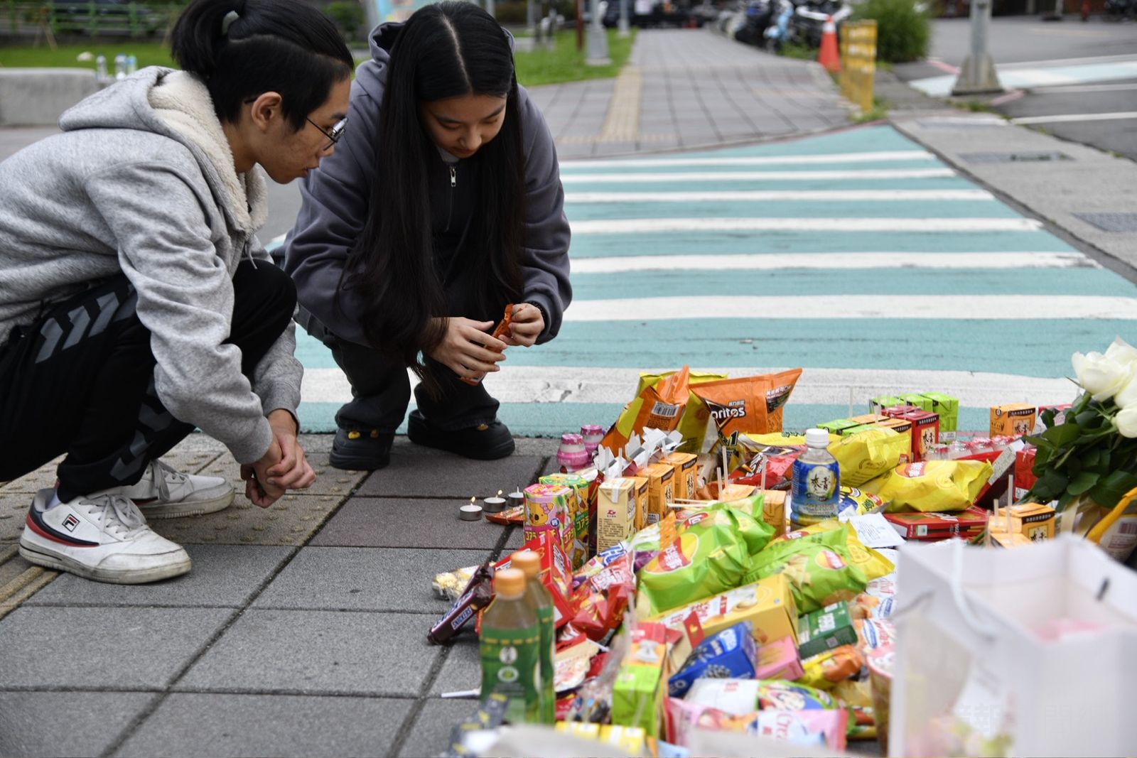 隨著車禍撞擊畫面不斷在網路上曝光,當天晚上就陸續有民眾自發前往事故現場哀悼,甚至特意從台中北上致哀。民眾表示,因為在網路上看到車禍現場的監視器畫面,又聽聞這起車禍已造成3人死亡,相當不忍,因此特地前來現場致哀,還特地準備學生愛吃的東西當祭品,事發路口的號誌燈下,擺滿鮮花及年輕人愛吃的零食。