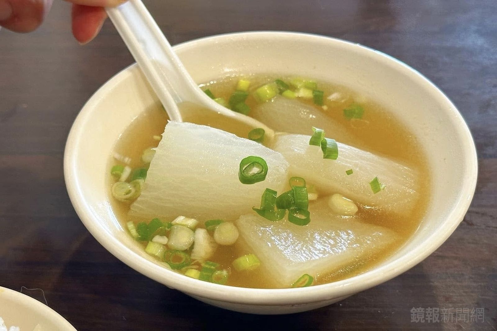 店裡的清湯是免費供應的,燙過高麗菜、煮了白蘿蔔和關東煮,味道很清甜。想喝得滿足有料,就直接點「菜頭湯」(30元/碗)。