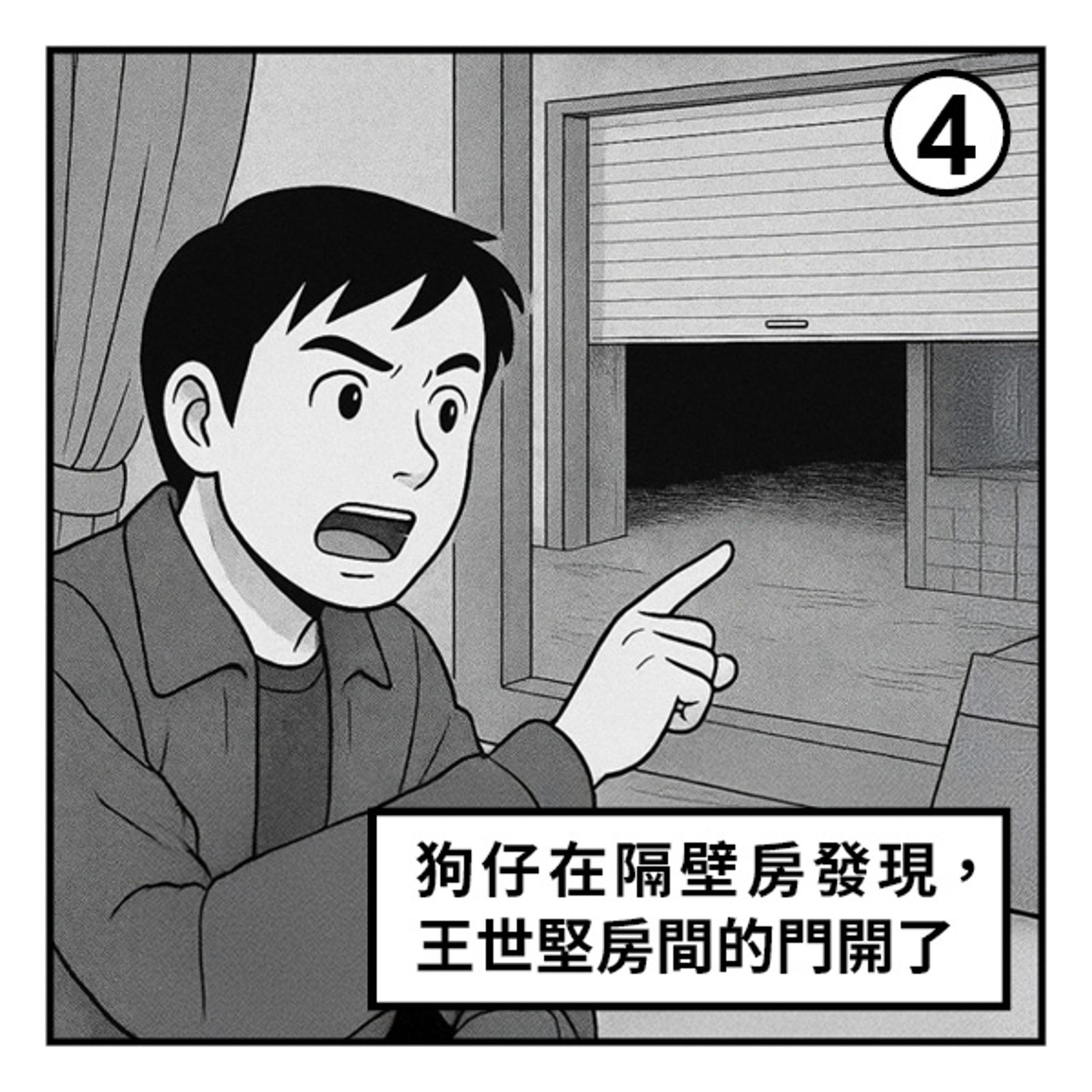 我們全場掃過去,只有一間鐵門敞開,跟山坡組核對後,確定就是王世堅的房間,立刻衝進去拍照蒐證。那時我還是個涉世未深的社會新鮮人,看到房間格局整個驚呆──浴缸跟馬桶直接擺在床邊,毫無遮掩,我一邊錄影的同時,內心不斷冒出問號。