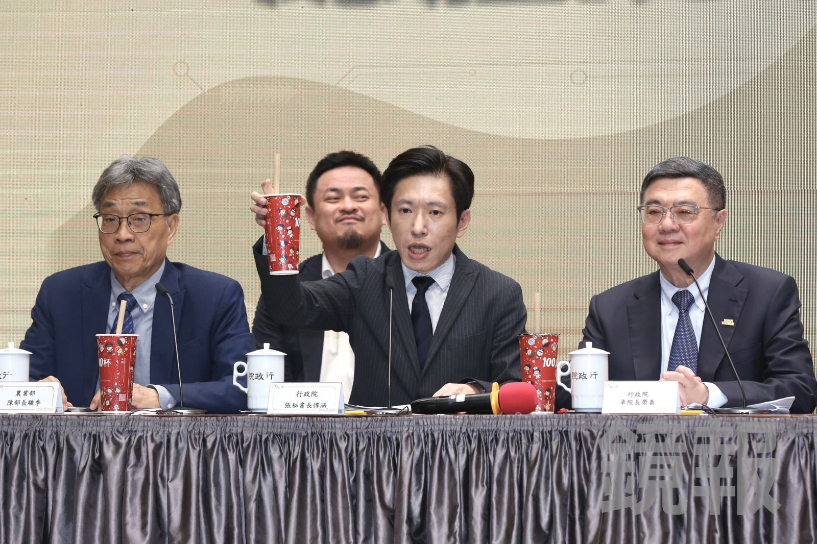 行政院下午舉行記者會,出席官員每人桌上都擺放一杯珍奶,同時,行政院也發送珍奶給各媒體記者,原本媒體以為只是單純請喝飲料而已,但其實暗藏深意。
