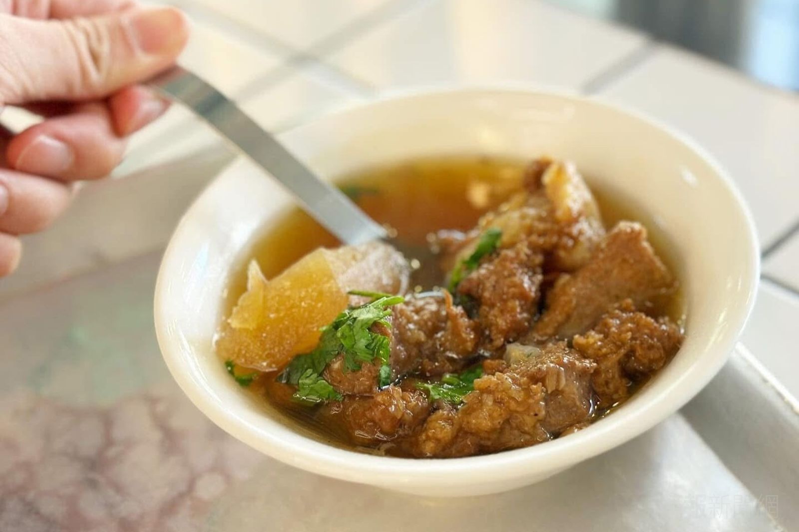 吃飯一定要配湯才對味,「招牌排骨酥湯」(75元/份)喝得到冬瓜的甜香,排骨肉入味,但口感略乾澀,整體味道偏重。