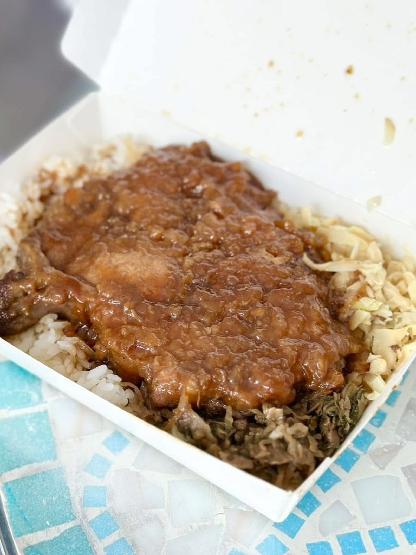 第2次造訪時,還試了爌肉飯,有肥、中、瘦可以選,我選中的。一開蓋有嚇到,也太大塊,算是對得起他的價錢。滷汁的醬味都有吸進肉裡,是比較鹹香,沒帶這麼多甜味。吃得到一絲一絲的纖維口感,不會乾柴。