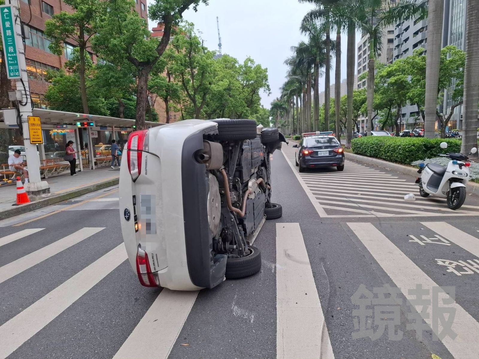 大安分局調查,這起事故發生於昨天下午4點20分,張姓男子開著愛車沿復興南路一段南往北行駛,準備經由建國高架道路前往林口長庚,因為對該路段路況不熟,轉彎時沒注意到道路狀況,右前車頭直接「硬上」仁愛路三段西側的行人庇護島,導致車身失去重心,瞬間向左側翻。