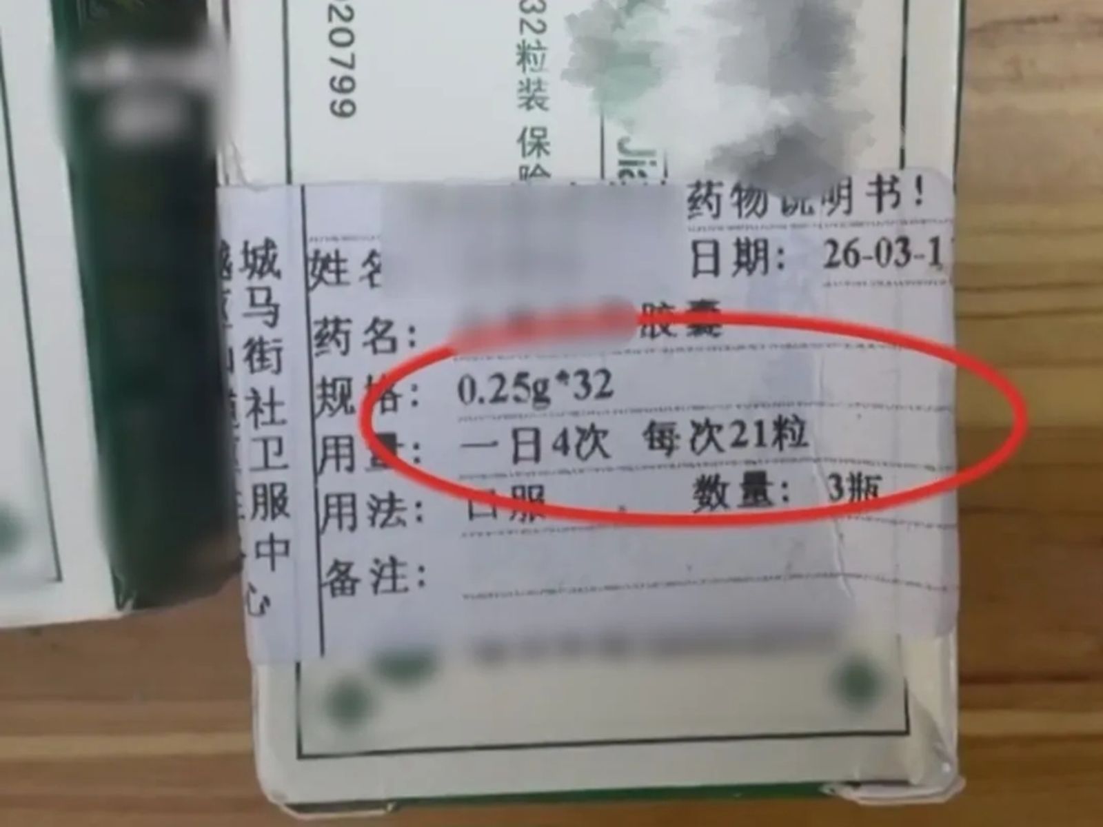 綜合中國媒體報導,這名婦人說,3月11日自己被電動車壓到腳部,到越城區馬山街道社區衛生服務中心就醫,醫生開出了一款口服膠囊,用量為1天4次,每次21顆膠囊。
