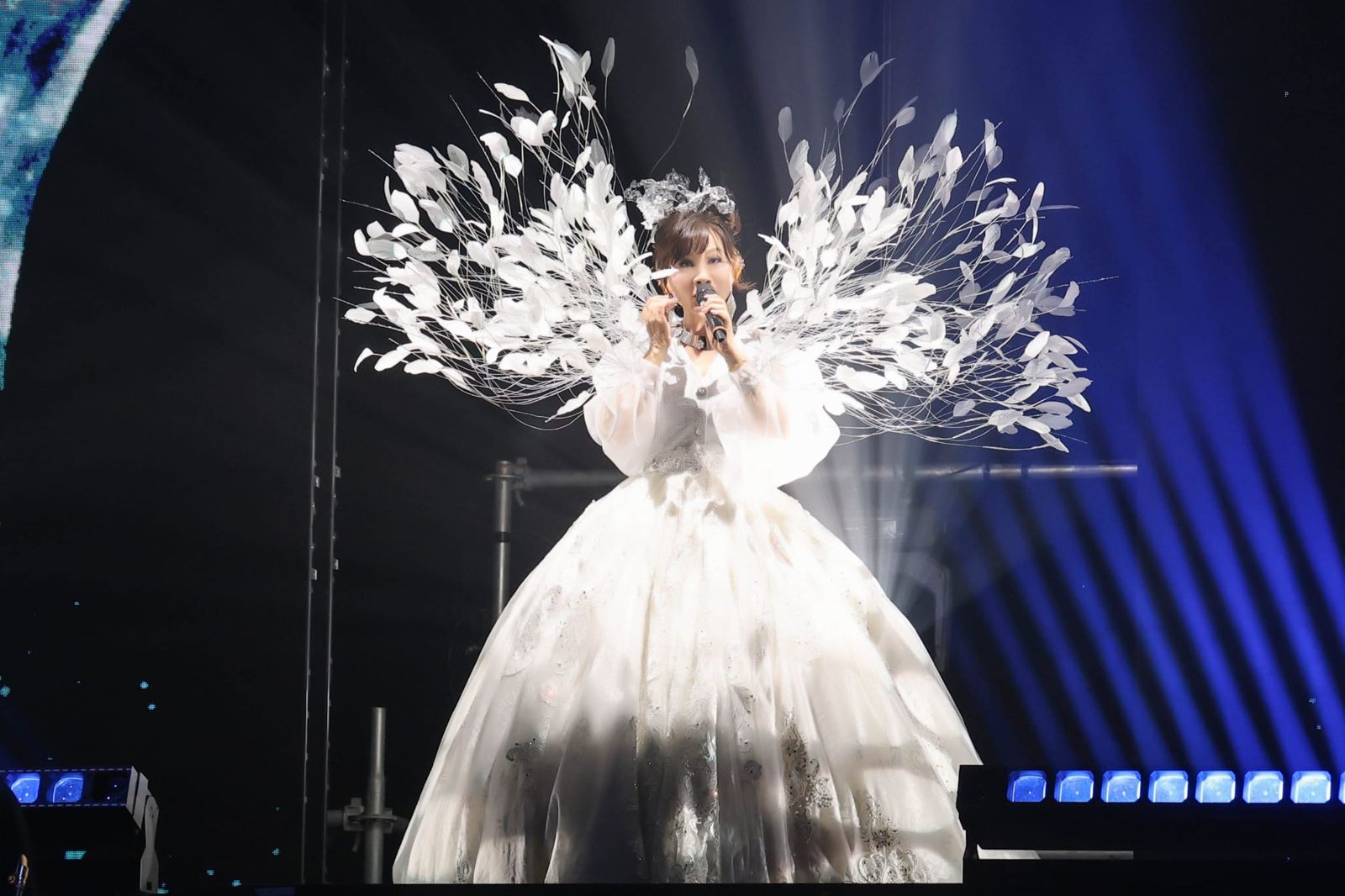 出道48年,龍千玉首次個人演唱會25日在台中惠蓀堂登場,演唱會造型共計12套造型服,耗資200萬,光是開場的「龍飛鳳舞」造型,搭配著千根羽毛與宮廷手工蕾紗大蓬裙,就重達30公斤,整場演唱會需出動6組人穿梭舞台與更衣間幫忙更換,龍千玉也在唱第二首歌後,在台上向大家鞠躬道歉了!