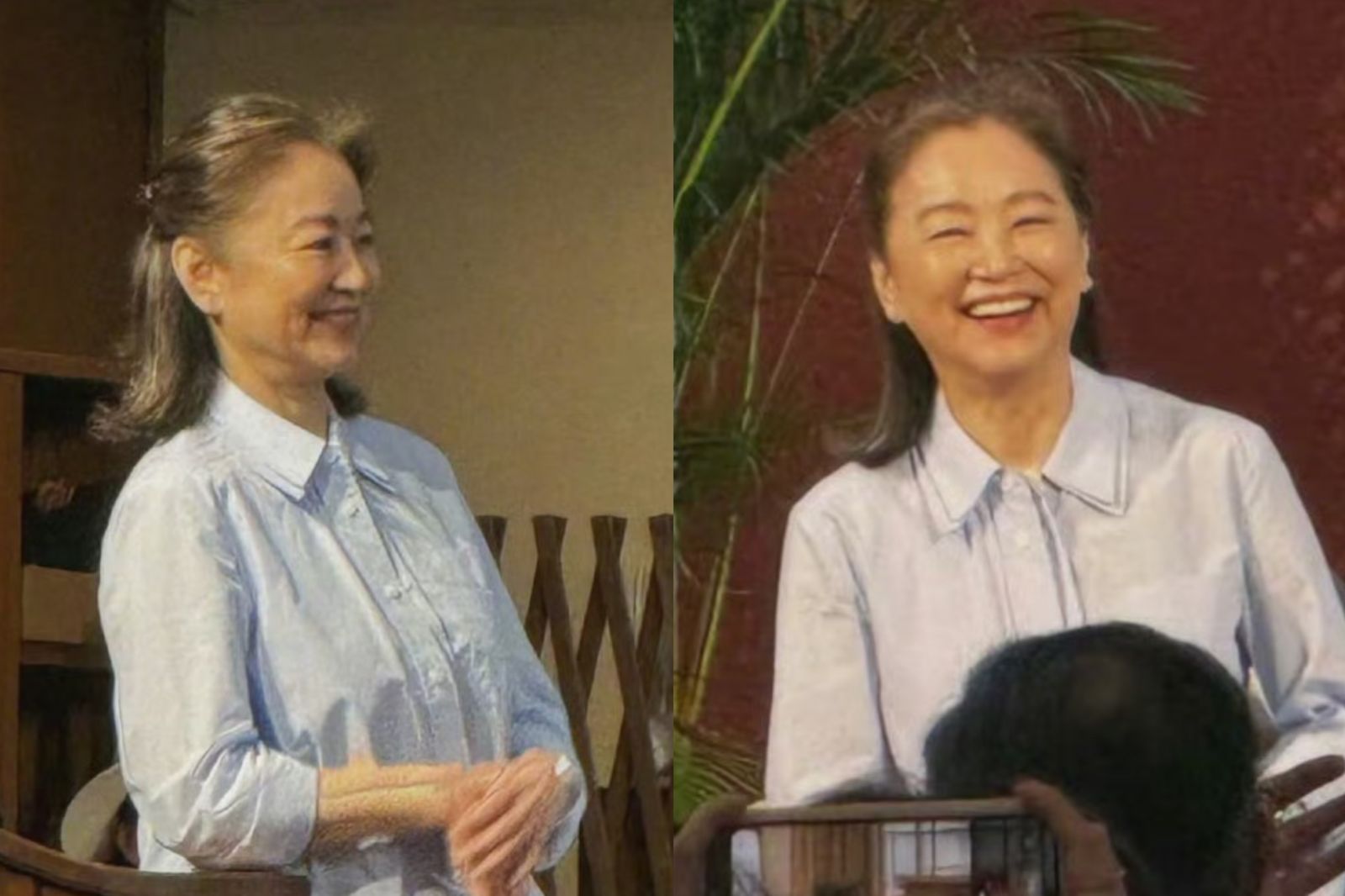 當天林青霞以一身淡雅造型現身,選穿淺藍襯衫搭配米白長裙,整體打扮簡約卻不失高貴氣質;她將頭髮綁成半丸子頭,自然露出些許白髮,臉上細紋也清晰可見,以最真實的狀態面對大眾,展現從容自信的優雅風采。