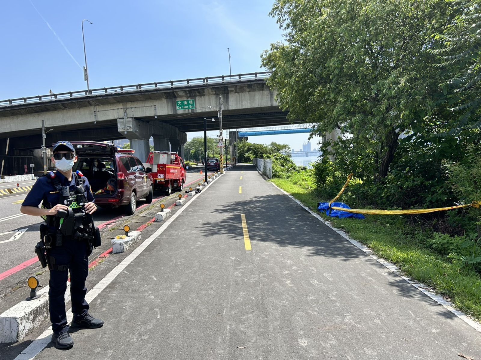 據了解,昨日深夜11點多,警消接獲報案,疑似有名女性行經大漢橋板橋往新莊方向時,不明原因從橋上墜下,雖然警消獲報後立即展開搜索,但沒有發現女子下落,結果就在今天上午9時許接獲通報,在堤外便道往三重方向發現浮屍,但警消到場後確認死者為男性,並非昨日落水的女子。
