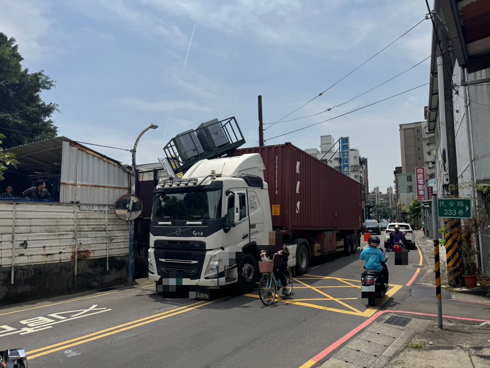 警方表示,上午11時許接獲報案,指稱民安路355號旁有車輛撞擊變電箱並冒出濃煙,立即派員趕赴現場。經查,54歲黃姓男子駕駛貨櫃車行經該路段時,不慎擦撞路旁變電箱,撞擊瞬間竄出濃煙並起火燃燒,所幸未波及他人,也未造成人員傷亡。
