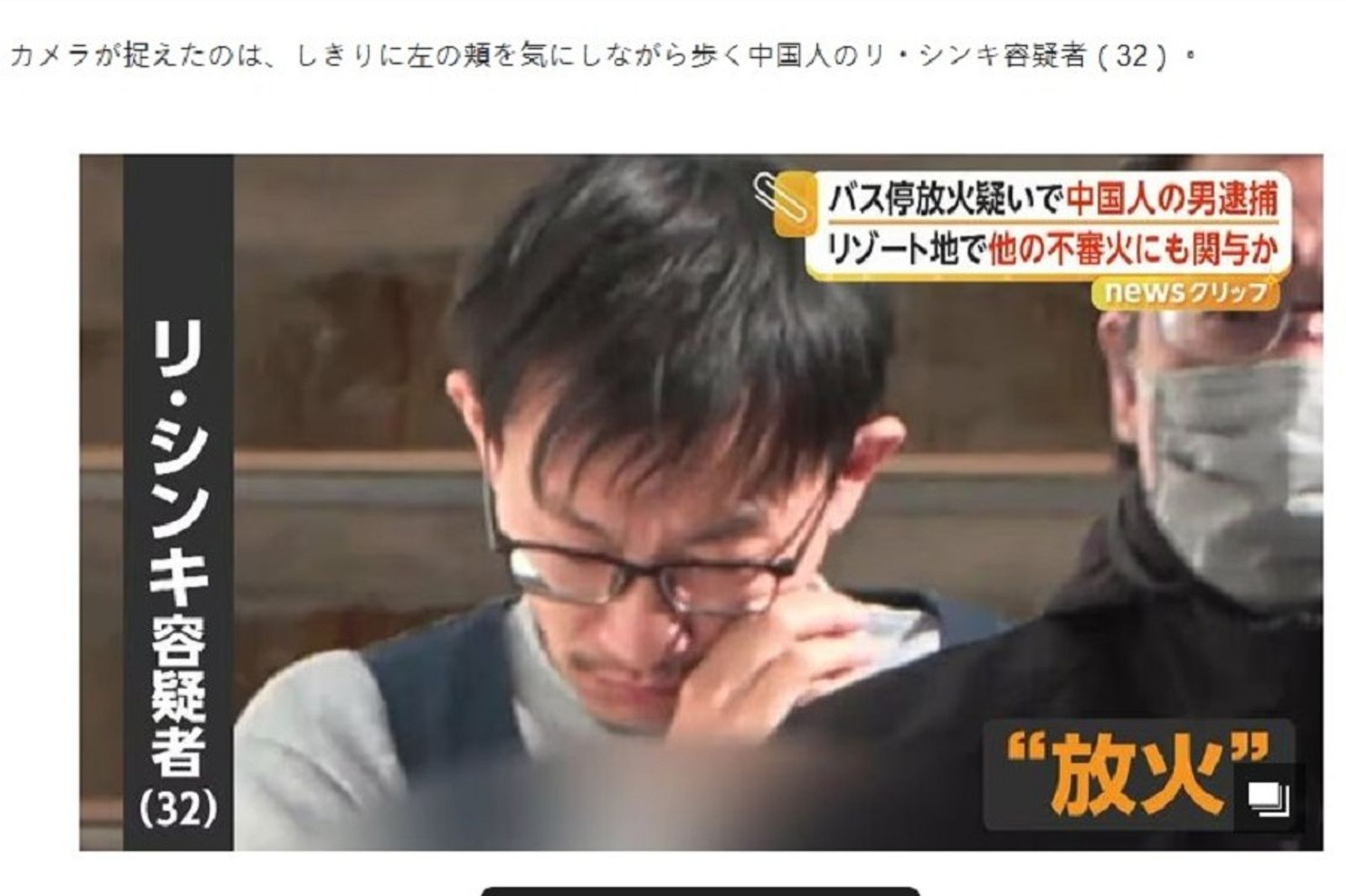 日本北海道留壽都村,在本月23日深夜11時左右,有一處公路旁的公車亭發生大火,整個木造車站全被燒毀,火勢猛烈,嚇壞了當地人。警方在本月25日逮捕並移送32歲的中國籍男子李欣其(音譯),並懷疑他不只在公車亭縱火,另外還有2起縱火案也與他有關。