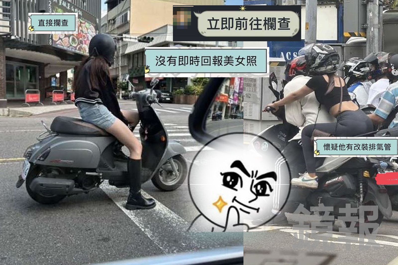 從流出的截圖畫面可見,多張街頭拍攝照片集中於年輕女性,包括穿著短褲、短裙的女性機車騎士與行人,拍攝角度多為側拍或遠距離捕捉,明顯與一般勤務蒐證性質不同,對話中更出現「懷疑他有改裝排氣管」等戲謔語句,但實際附圖卻以女性影像為主,遭質疑已偏離公務用途,甚至涉及不當蒐集個人影像。