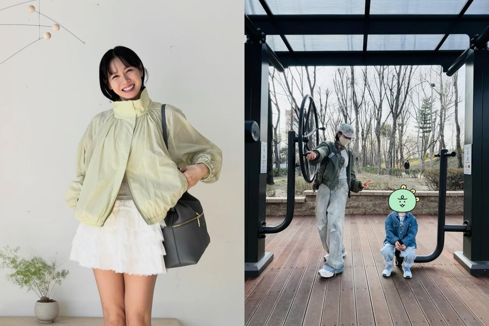 孫藝真昨在IG小帳曬出一張與兒子的合照,母子倆一同外出出遊,穿著牛仔外套的小甜豆,靜靜坐在遊樂器具上,孫藝真則開心比YA,掩不住曬娃之心的孫藝真,也將照片PO在小帳,並不忘幫兒子的臉用貼圖遮住。