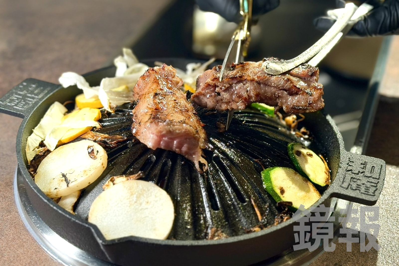 店內有12席板前座位,以北海道成吉思汗燒肉技法,使用圓頂鑄鐵鍋搭配炭火直烤,讓油脂緩緩釋放、香氣層層堆疊,讓燒肉有外酥內嫩的口感層次。