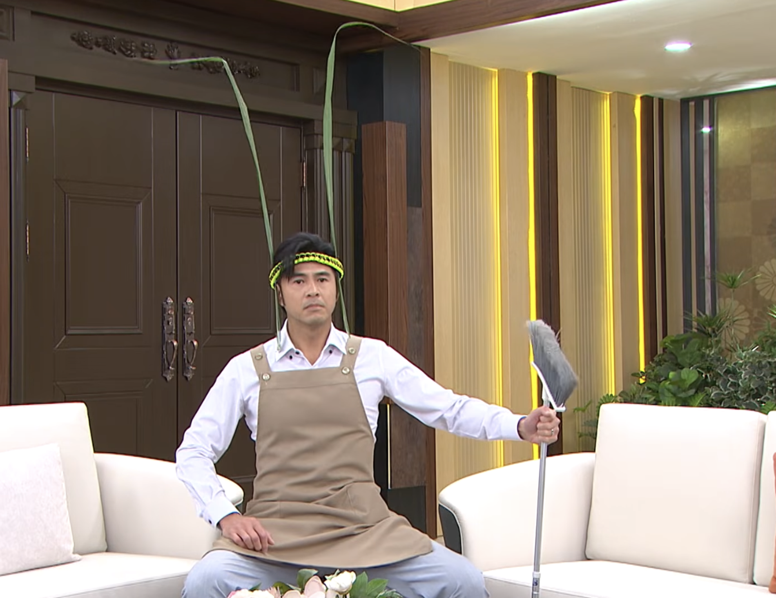劇中德馨追劇入迷,黃玉榮不甘心老婆被「搶走」,搞笑頭上插兩支草、手拿掃把當「武器」,自封「早安侯」,德馨傻眼嗆他頭上是「蟑螂鬚」,黃玉榮則一臉正經說:「古有侯爺逐玉,今有俊龍戲鳳,你就是我的鳳凰。」德馨則氣罵他像蒼蠅一樣打擾自己追劇,並搶過掃把追打。