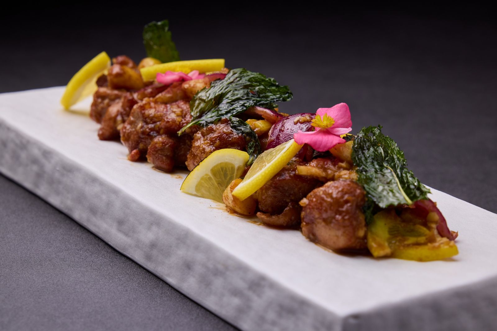而「檸香薄荷乾煎雞」(488元/份)則展現主廚對清香涼意的拿捏。醃漬入味的雞腿乾煎至香氣四溢,裹上檸檬麥芽糖醬後酸甜爽口,再佐以新鮮薄荷與黃檸檬,入口有如夏日微風拂面,清新又開胃。