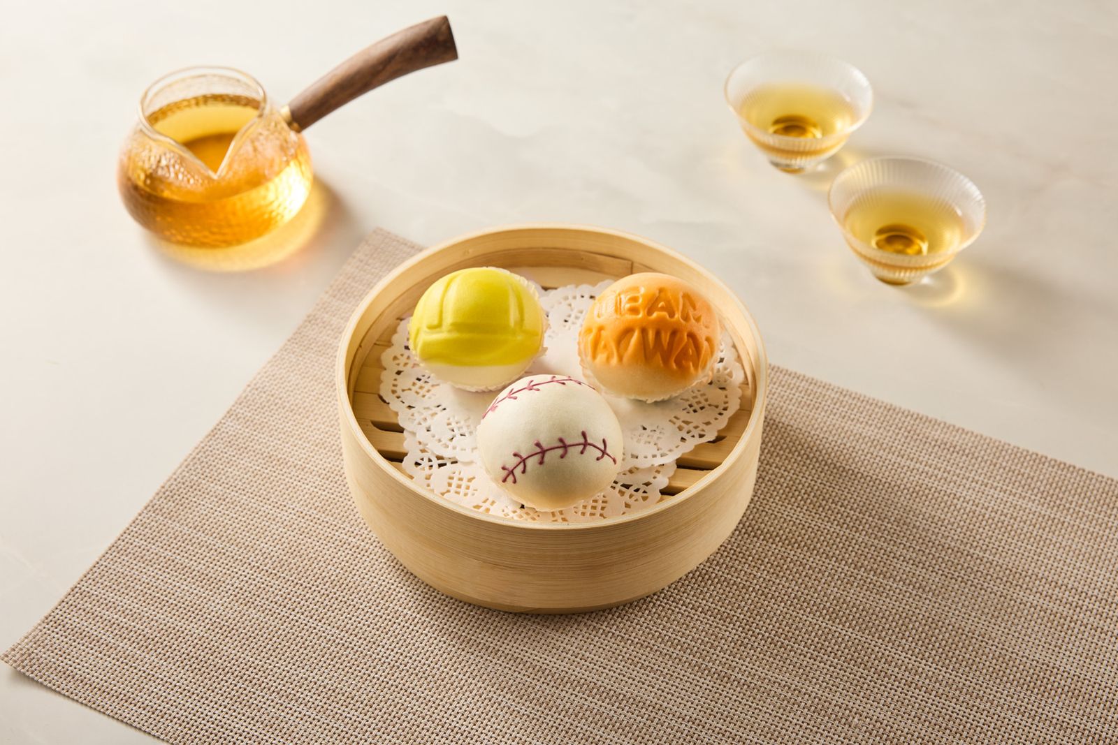 不可錯過的,是話題流沙包「球來必中2.0」(188元/3粒),華麗升級再登場!新版本設計聚焦國人最愛的棒球主題,除經典白球外,特別推出印有「Team Taiwan」字樣及可愛棒球帽造型,一口咬下,鹹甜濃郁的奶黃流沙餡爆漿而出,綿滑不膩。搭配外皮的鬆軟口感,是為現場應援的最佳補給。