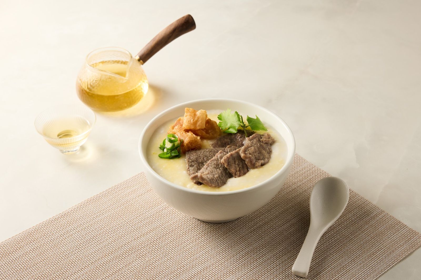 想吃得清爽又有飽足感,升級版「滑蛋牛肉粥」(168元/份)不容錯過。採用東部富里米,生米慢熬至米粒開花、米湯交融,搭配滑嫩牛後腿肉片與蛋花,香氣濃郁、入口滑順,搭配油條一起享用,讓人回味再三。