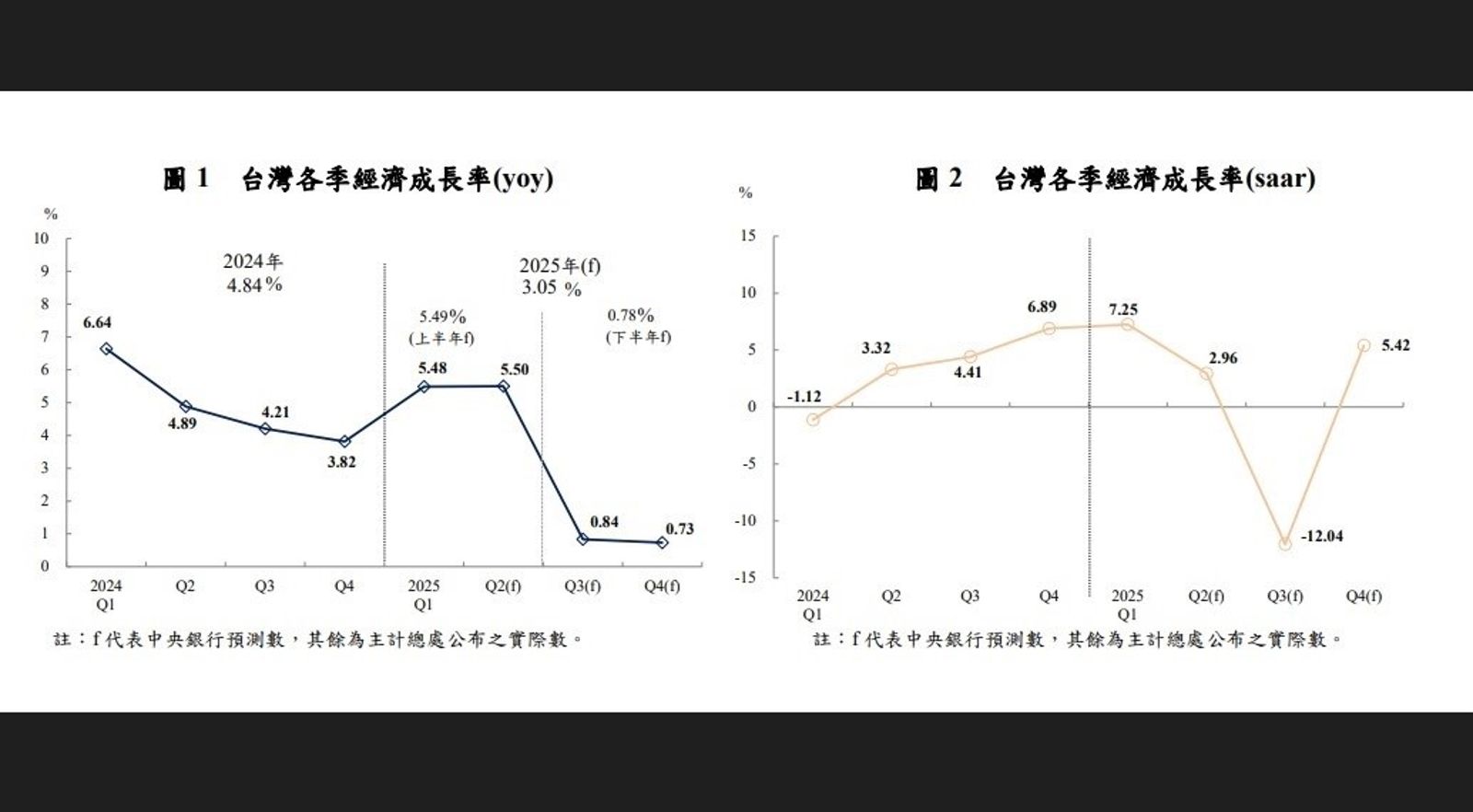 受惠於人工智慧、雲端運算(Cloud Computing)與高效能運算 ﹙High Performance Computing,HPC﹚等新興科技應用商機熱絡,以及美國暫緩加徵關稅90天,客戶端積極拉貨,台灣出口成長力道強,中央銀行報告預估,上半年經濟成長率達5.49%,超乎預期。但下半年,雖然AI相關產品需求會持續,但國外廠商已提前於上半年拉貨,央行給出的預估是下半年經濟成長率0.78%,預測2025年國內經濟成長率為3.05%。