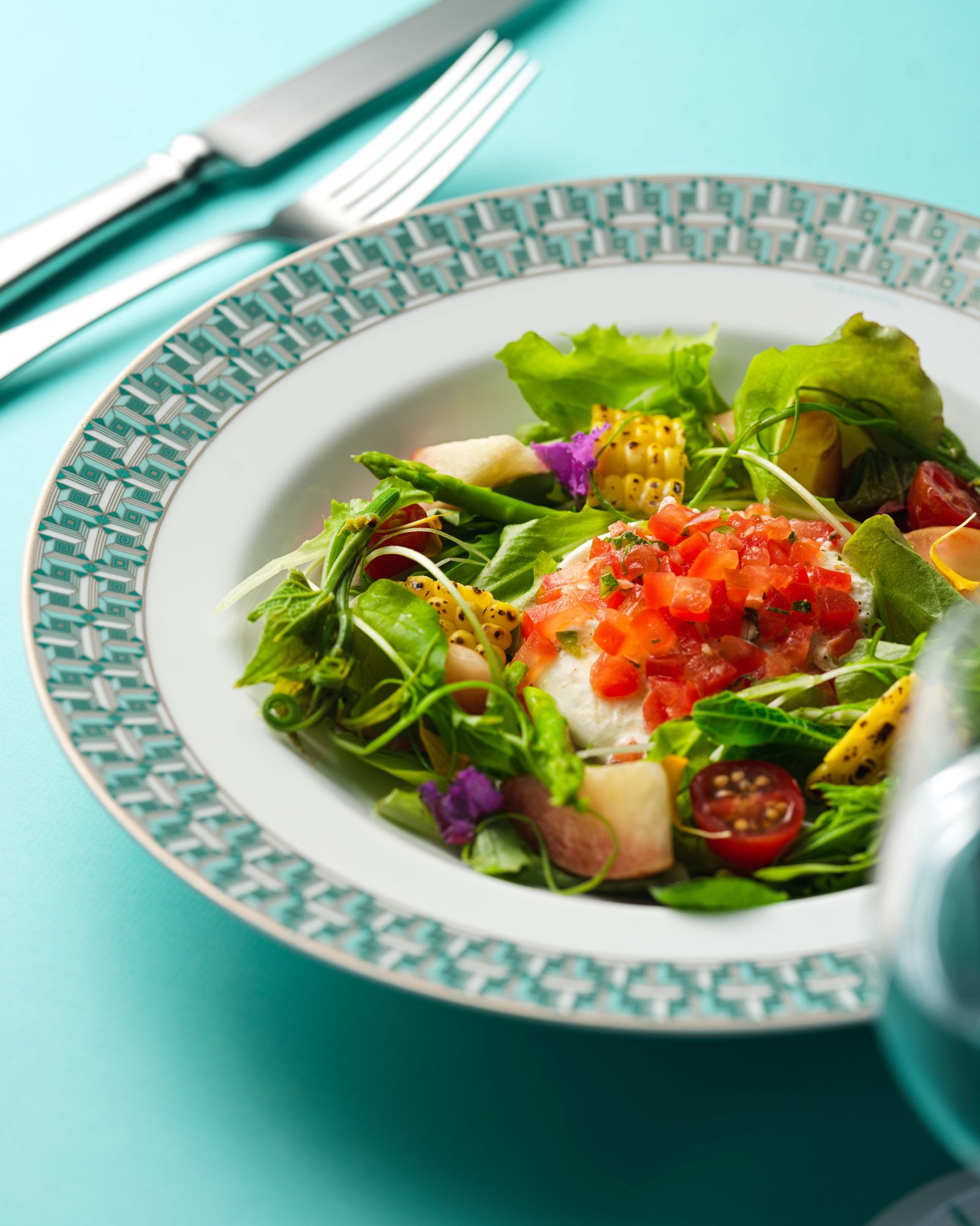 位於信義區的「Blue Box Café」推出全新夏季菜單,由主廚林明健以法式手法搭配當令食材,打造一系列色彩繽紛、口感清爽的料理。從桃子布拉塔沙拉、香煎干貝,到酥脆玉米雞胸、龍蝦燉飯,每一道都展現豐富層次與細膩火候。甜點部分也不馬虎,像珠寶般精緻的巧克力慕斯與千層蛋糕,結合果香與茶韻,為餐點畫下優雅句點。