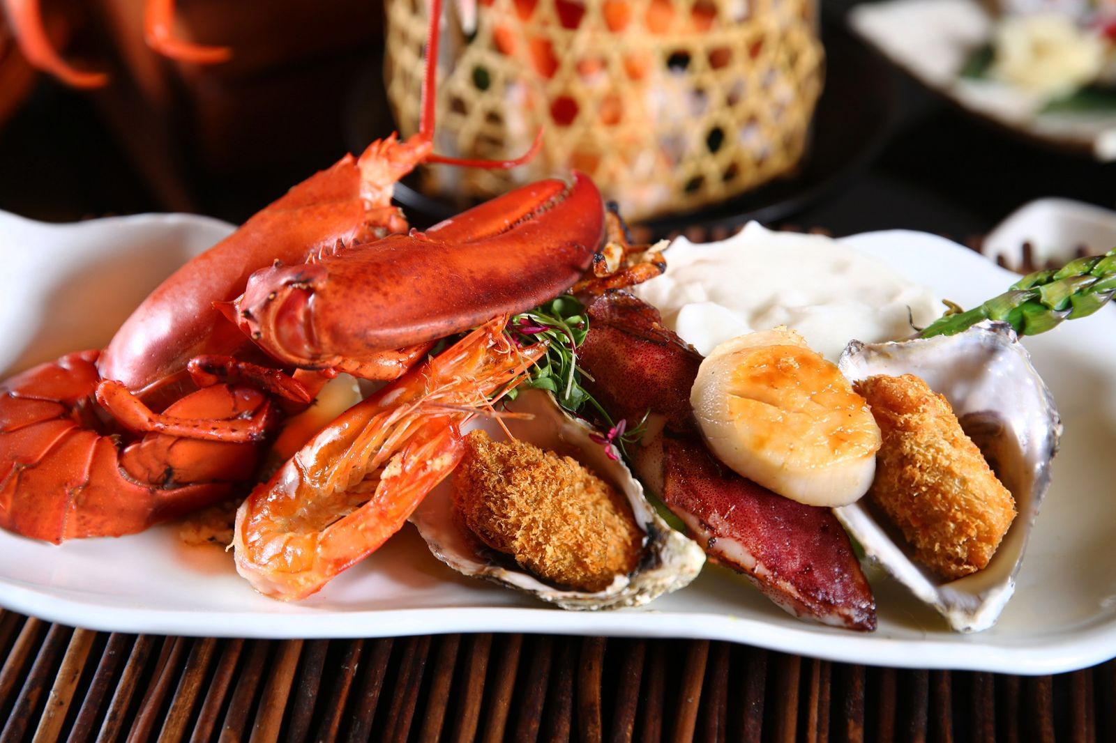 這次主打當令海鮮無限供應與日式經典熱食現點現做。5大主題餐檯中,最受矚目的是澎湃海鮮吧,集結來自澎湖與全台漁港的花蟹、九孔鮑魚、白蝦、淡菜、生魚片、小章魚等各式海味。