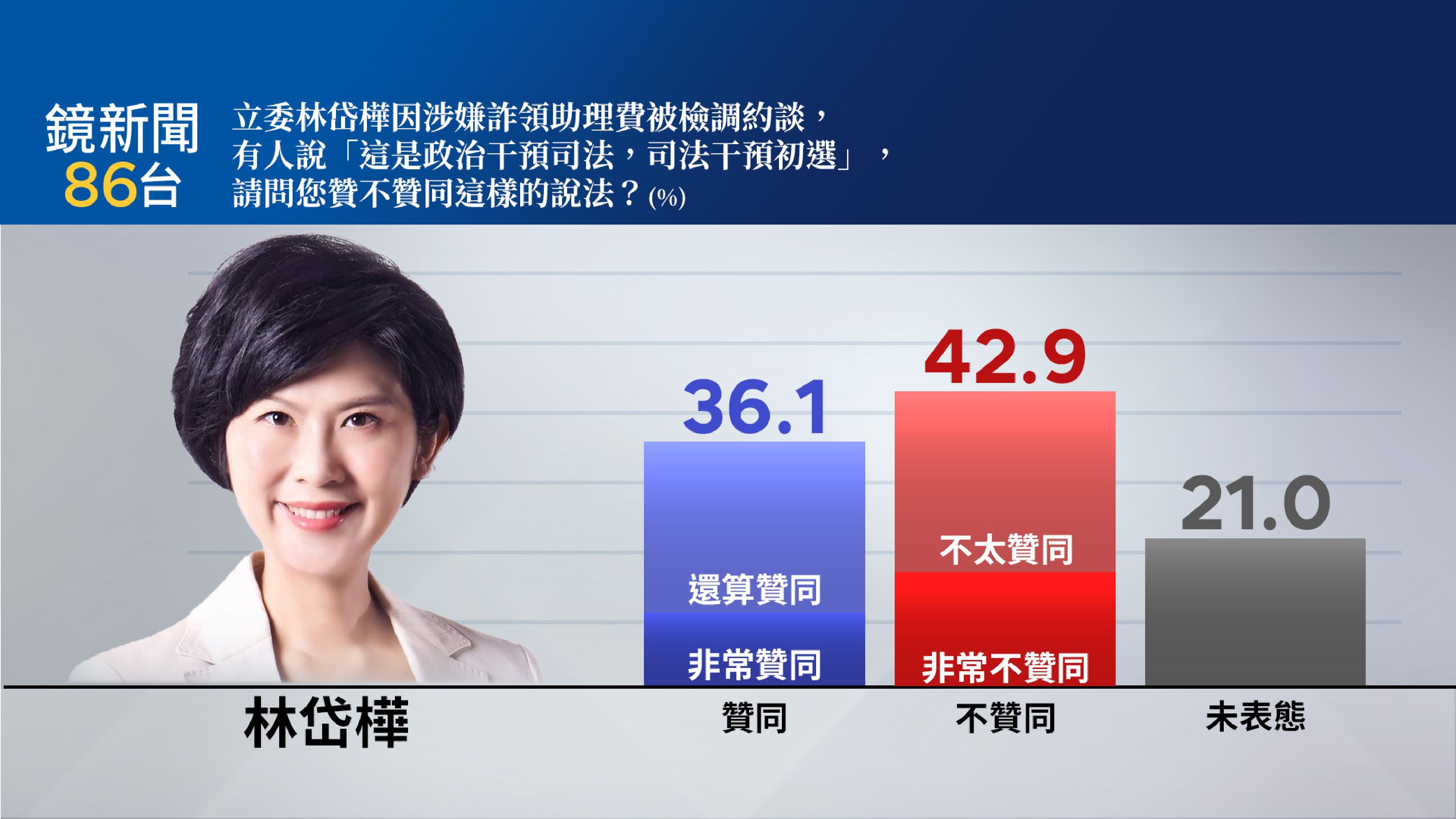 林岱樺案「政治干預司法,司法干預初選」? 36.1%贊同、42.9%不贊同